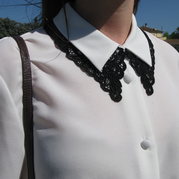 Pero en el look de hoy, para mi la prenda más especial no son los pantalones palazzo ni la gabardina, sino un pequeño detalle. Sólo verlo me encantó. Es un collar de encaje vintage hecho a mano por Susana de Colette Barcelona, que me parece realmente original para darle un toque distinto a una camisa blanca. ¿Qué os parece? ¿Os pondríais este collar camisero? ¡Besitos!