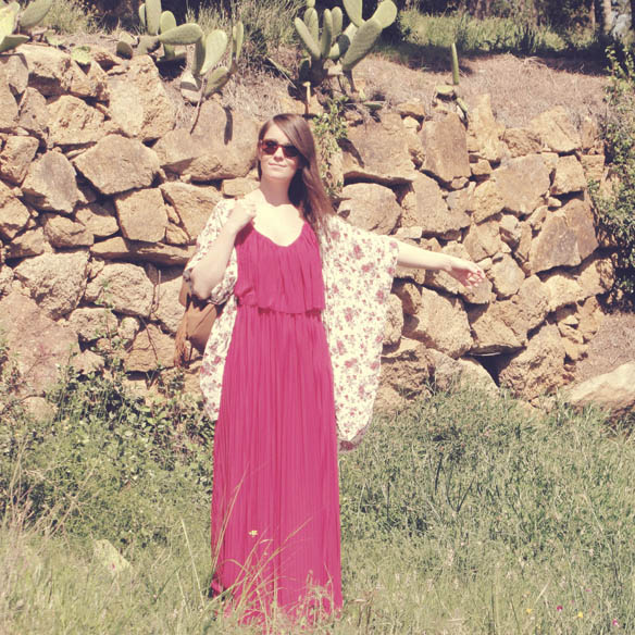 Por eso hoy os traigo una propuesta boho para la noche más larga del año. Combino un maxi vestido granate plisado, con un kimono de flores de Double Agent que me apasiona. Sí, tengo que reconocer que los que me conocéis sabéis que me lo pongo siempre que puedo jeje. ¿Qué tendrán los floral prints que me gustan tanto?