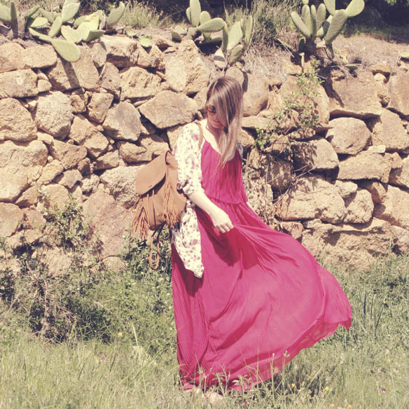 So today I bring a boho proposal for the longest night of the year. I match a maroon pleated maxi dress with a Double Agent floral print kimono that I love. Yes, I have to admit that those who know me well know that I will always wear it when I can hehe. Why do I like so much floral prints?