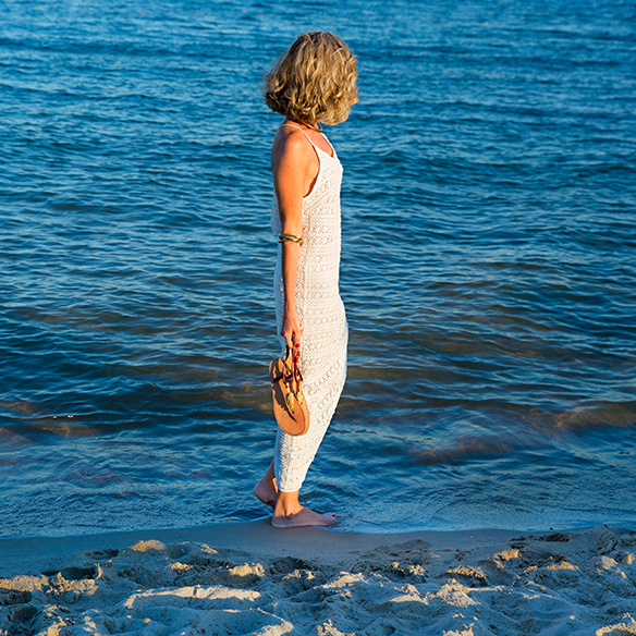 I always spent the night of Saint John’s Eve by the sea, and this year will be the same. It’s a magical night with light, fire and music. When I saw this dress I knew it was «the dress», I was not looking for it, it just appeared. It is made of crochet, lined, and I wear it with flat sandals to dance. Enjoy!