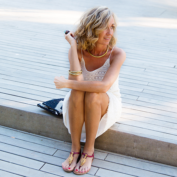 Es una noche mágica con luz, fuego y música. Cuando ví este vestido supe que era «el vestido», no lo buscaba, simplemente apareció. Es de crochet, forrado, y lo llevo con sandalia plana para poder bailar. ¡A disfrutar!