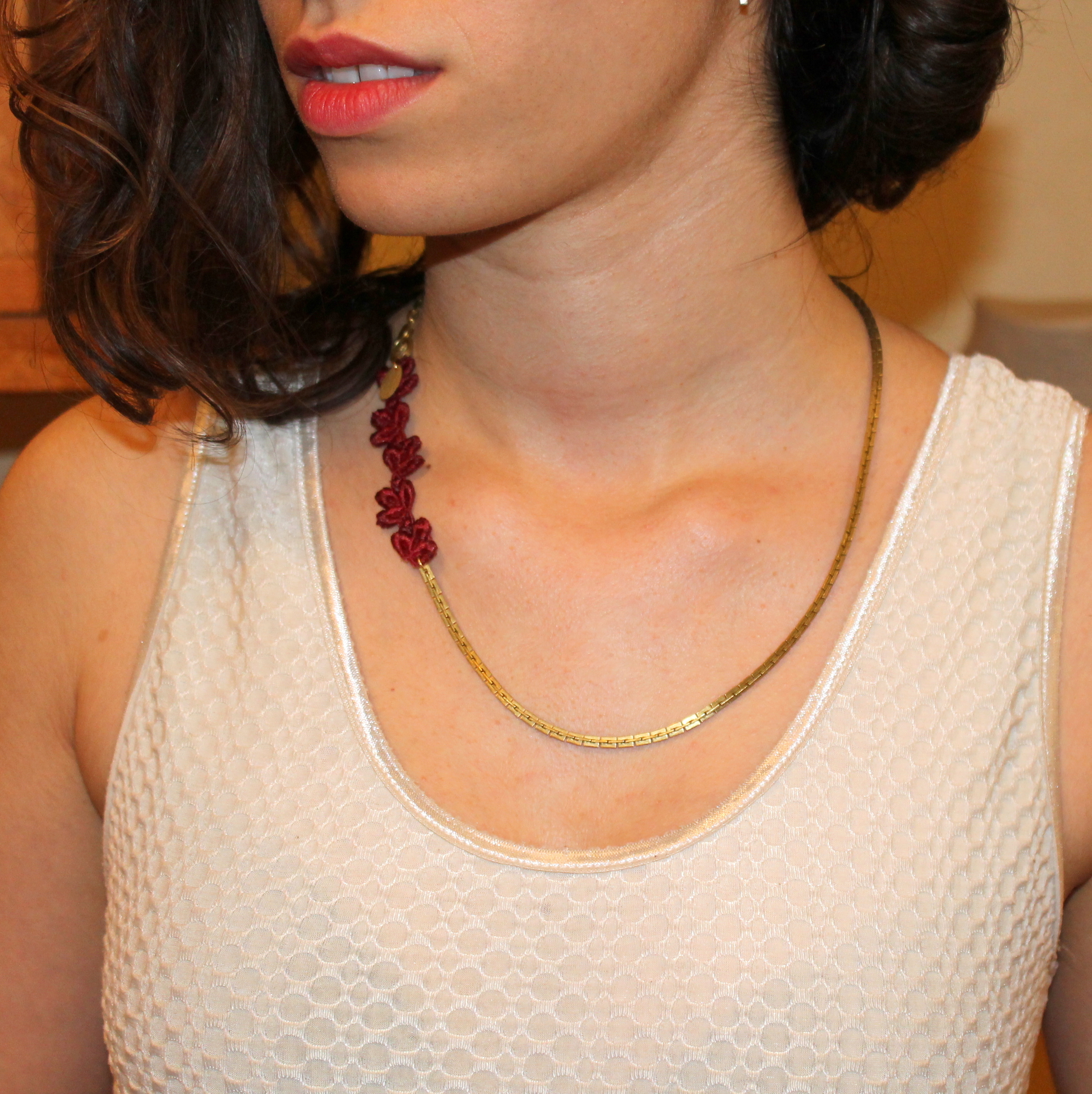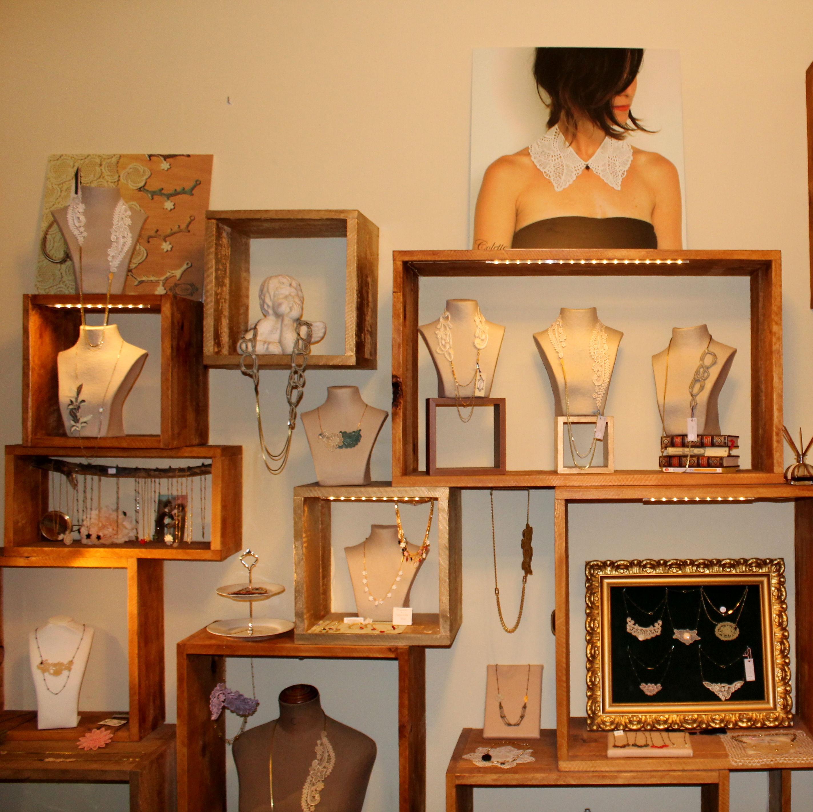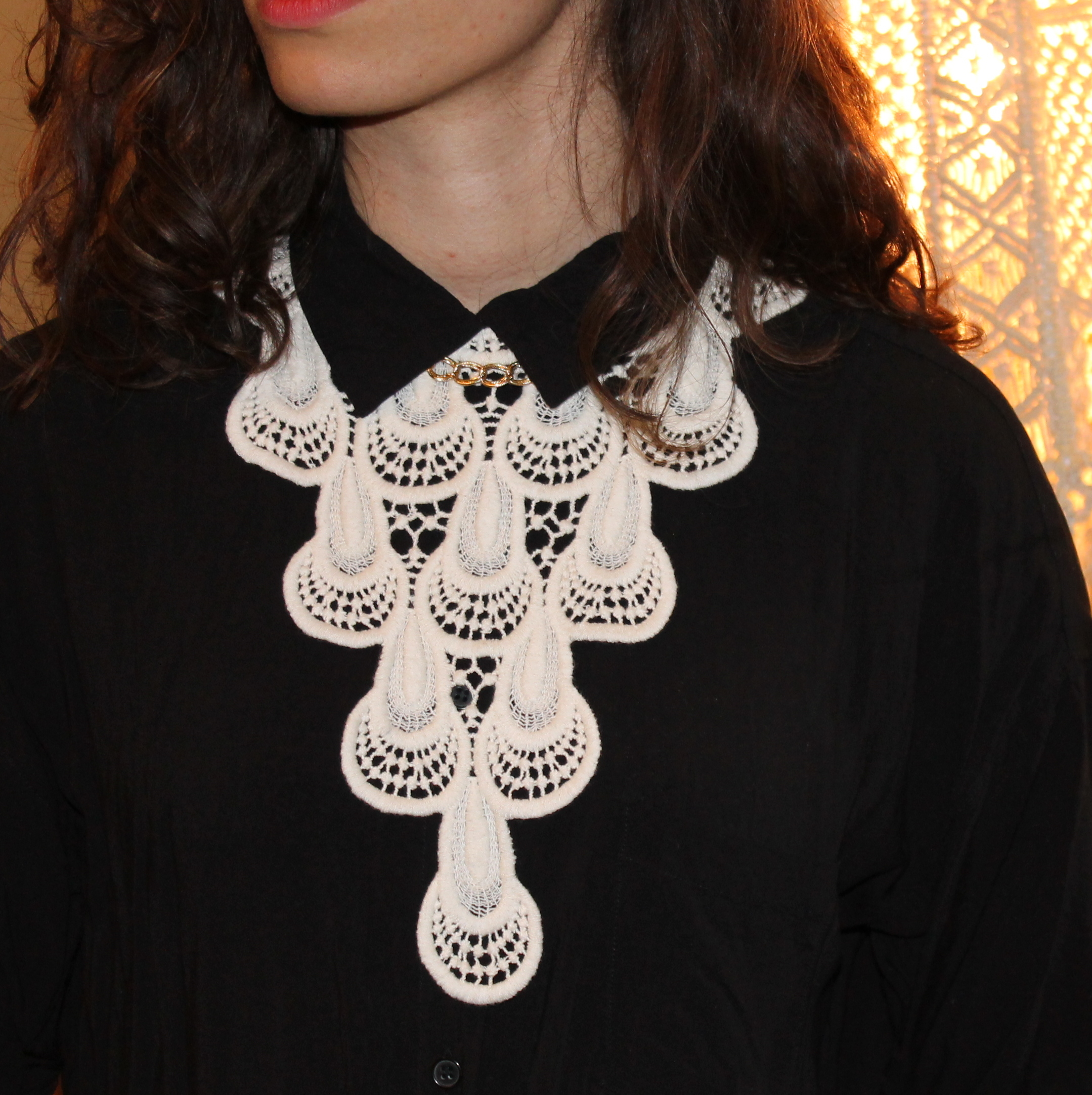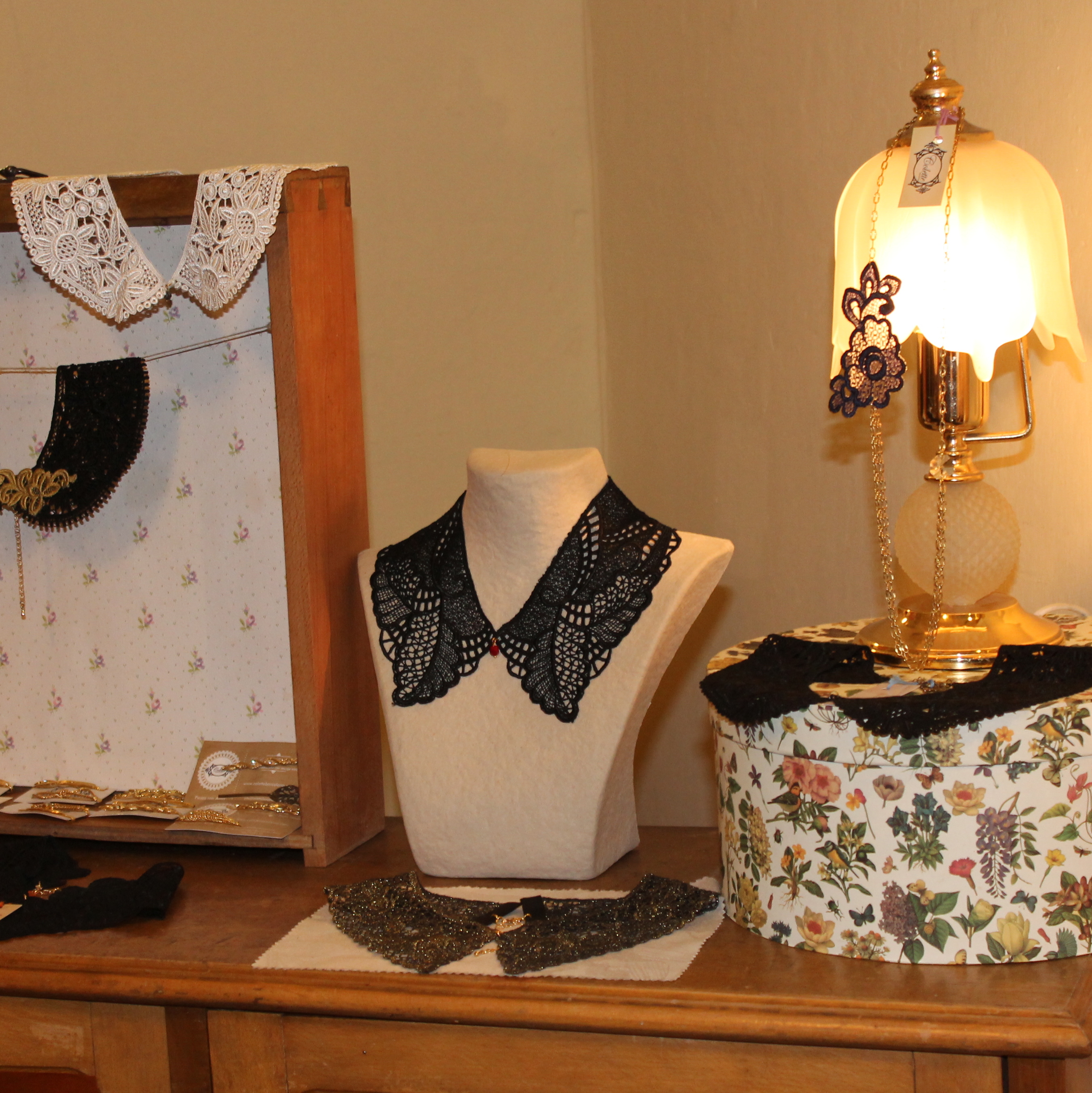 Se trata de complementos únicos, aunque podríamos llamarlos pequeñas obras de arte. Son accesorios totalmente handmade, un producto artesano, donde todo el proceso de creación lo hace Susana. Escoge diferentes piezas de encaje que rescata de diferentes partes del mundo. Trabaja con encaje de alta calidad, vintage, donde cada pieza tiene una historia única. Juega con los encajes y tintes, cadenas o broches. Mezcla el encaje con cadenitas para crear collares largos y cortos, o junta piezas para obtener un cuello camisero que le da un toque distinto y original a tus camisas. Además de los broches, coronas o pulseras que puedes encontrar en Colette, también hay un pequeño rincón con piezas de ropa (vintage, también) que ha elegido ella personalmente.