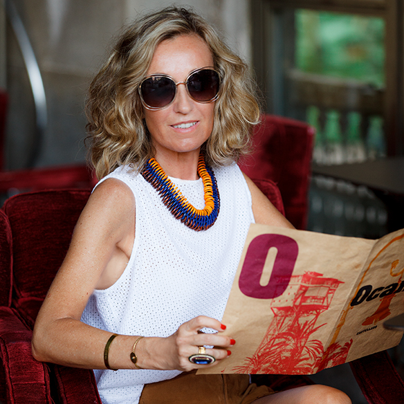 So I went to the closet of my daughter and I borrowed these Zara shorts, Dr. Bloom sleeveless blouse and necklace (brand discovery in Barcelona). Everything nice. To make my look, I matched it with yellow shoes by Jimmy Choo, which I alternate with flat sandals to comfortable walk down Las Ramblas. The straw bag is from the MUUÑ brand and they sell it in Castañer, and the sunnies are from the store Óptica Turó.