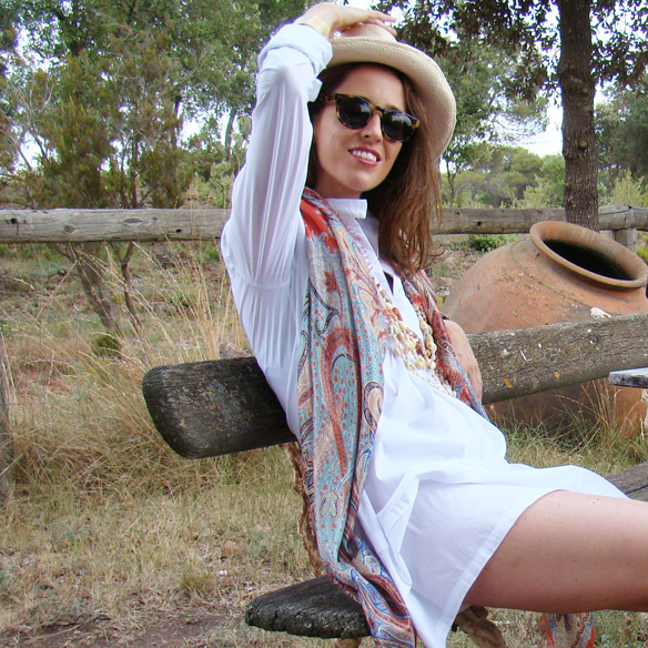 Today I show you some of the clothes and accessories that will come with me in my suitcase. I am almost on holidays!!! The shirt dress will be one of my favorites. It has a lot of possible combinations and it’s very trendy this summer. In the pictures I am wearing a white shirt dress from Menchén Tomàs combined with an Etro scarf and self-made seashells necklaces from Maldives and French Polynesia.