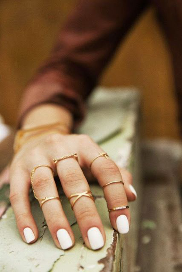 This summer dare with block colors for your nails. Leave aside the French manicure and pastel shades. Orange, yellow, blue, purple, green, fuchsia, and especially the pure white.