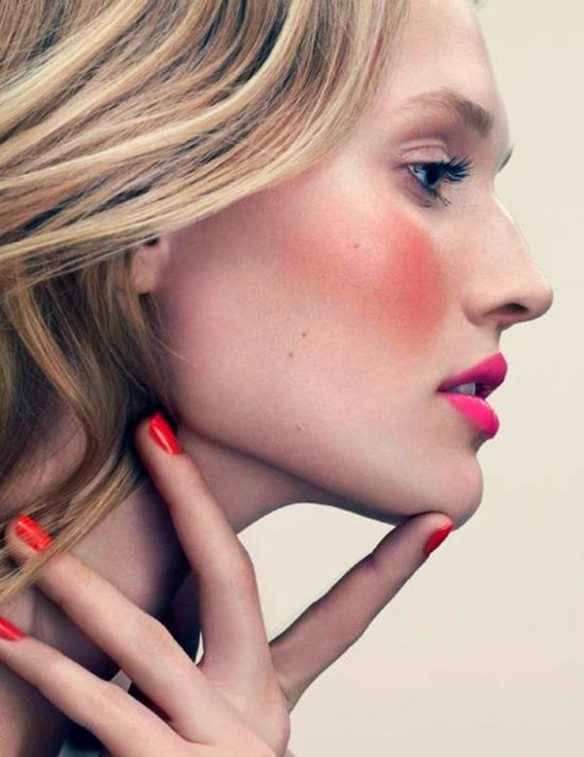 El blusher que mejor quede con tu tono de piel, o en tonos rosados o melocotones. Este verano apúntate al blusher para conseguir pómulos marcados y señalar alegría en el rostro.