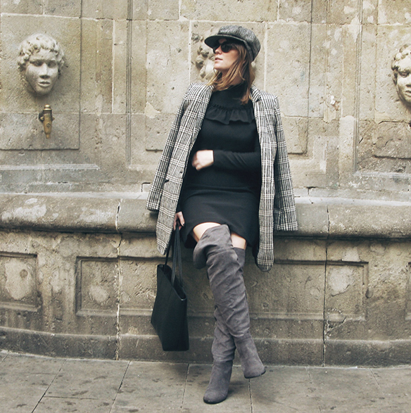 Over the knee boots are tricky to wear. First you hate them because you feel you look like a bit…, but then you realize that you don’t have to! If you match them with looser clothing and zero neckline, you get a prudent outfit at the same time as daring. For the first time, you will like yourself more wearing them with trousers; and little by little just dare with dresses or maxi jumpers showing a little bit of skin. In this case I match them with a dress I fell in love with due to its frills. The rest, a british touch. Do you dare with over the knee boots?