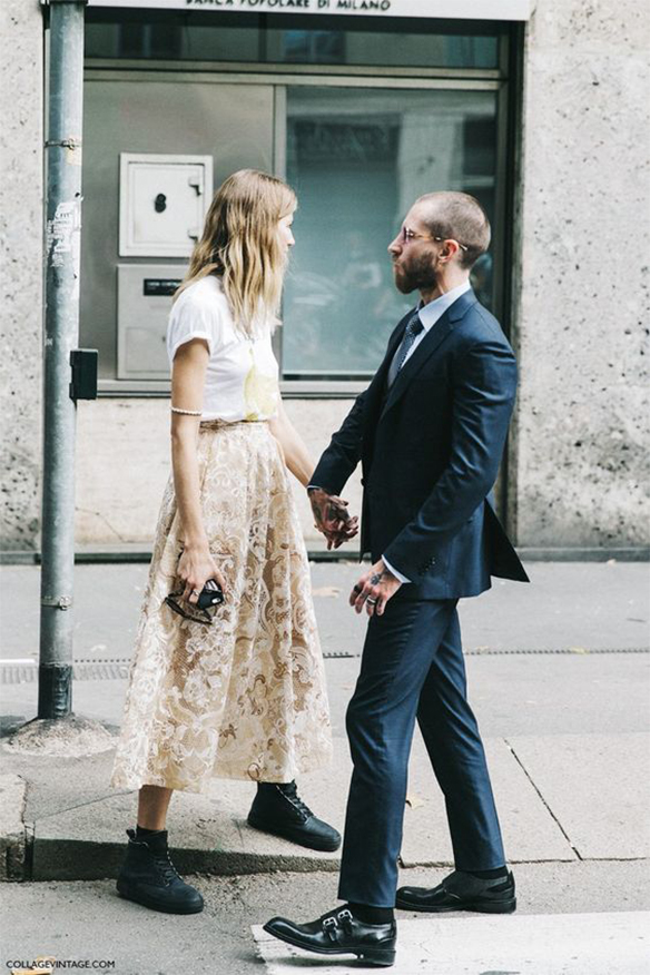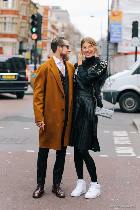 Veronika Heilbrunner y Justin O’Shea son la pareja estrella del street style por desprender complicidad y estilo a partes iguales. Un combo ideal que se complementa en cada captura. Ella combina el rollo sporty con looks trendies y exagerados, desenfadados y locos. A él le caracterizan sus trajes impecables y atrevidos, igual que las camisas estampadas y su barba hipster cuidada e impecable. Una estilista freelance y un director de compras del portal online mytheresa son los reyes del street style, la pareja del momento y un tándem único en estilo y personalidad. Comparten rollo, estilo, tattoos y amor en un día a día entre aviones, pasarelas, showrooms, hoteles y moda.
