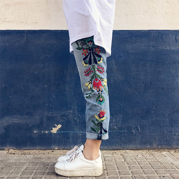 And suddenly these days a hurricane wind comes that almost makes us fly… It seems to be the Spring wind that blows to take the cold away and install the sun to our routine! We fancy a perfecto with a embroidered floral mom jeans (as we still do not enjoy them in the landscape), t-shirt and sunglasses, now for the whole season. Happy almost Spring arrival!