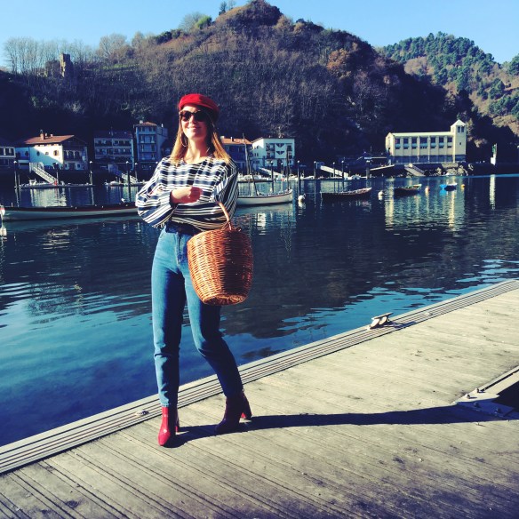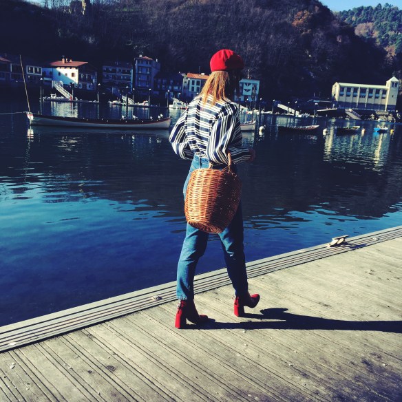 Today I bring you some very special photos done in Pasai Donibane, Donosti, in a trip I made with a friend to celebrate the entrance of 2017. You know that I have a sailor soul and I’m a lover of stripes. I like to match this striped balloon shoulder top in navy blue, with high-waisted jeans and give the touch of color with the red beret and booties. And of course, my wicker basket I can’t get rid of, and even less now that the good weather begins!
