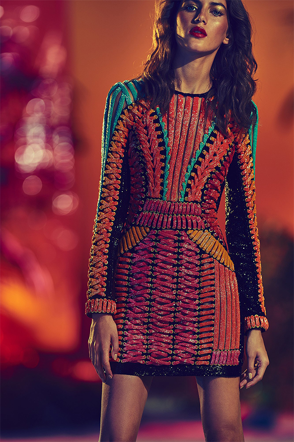 ¡¡¡Brutal la colección Resort 2017 de Balmain!!! Parece que la reciente compra (sept. 2016) de la firma parisina por un grupo privado de inversión de Qatar todavía ha hecho que ésta sea aún más increíble. Balmain abre un nuevo camino para llegar a todo el mundo y lo hace con una colección que mezcla en clave lujo los 70s con algunos guiños de los 90s. Con una silueta sexy, pero más relajada que de costumbre, la colección se inspira en esa sensación que tienes cuando estás en la playa esperando al anochecer y sabes que la noche nunca terminará. Un arcoiris de color y materiales. Juega con campanas y flecos, capas y ponchos, apuesta por rayas, geometría e incluso cut-out, y se atreve con un crochet multicolor que huye del típico hippie ¡y no puede ser más hot! Toda la colección es puro fuego. «Los colores están realmente inspirados en el cielo, en la sensación de que no hay límite. Como siento Balmain ahora mismo es que es un nuevo día, hay una nueva historia que contar», dice Olivier Rousteing. ¡Y qué historia, nos chifla!