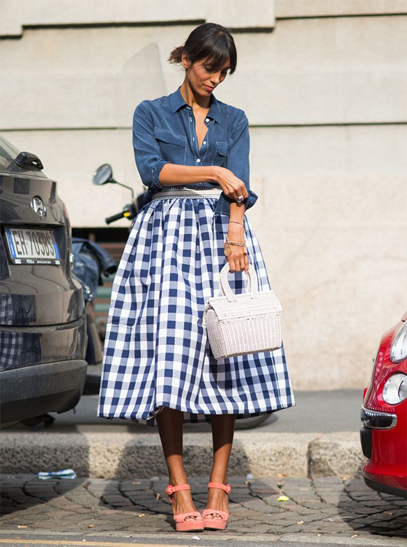 Countryside: a picnic in the countryside is one of the best spring plans and summer sunsets. Vichy print as the star, midi skirts, all kinds of ruffles, die cut fabrics and wicker accessories, both handbags and hats.