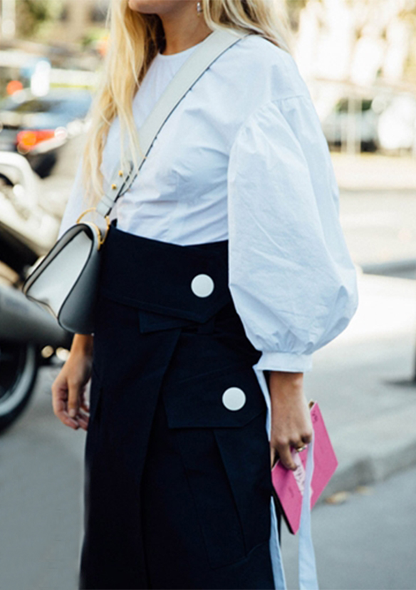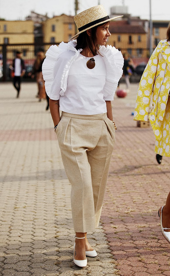 Poplin sleeves: this summer shoulders are prominent and not precisely for showing them as in the previous summer; the poplin sleeves return creating volumes on the shoulders, as well as the «T» silhouettes and shoulder pads.