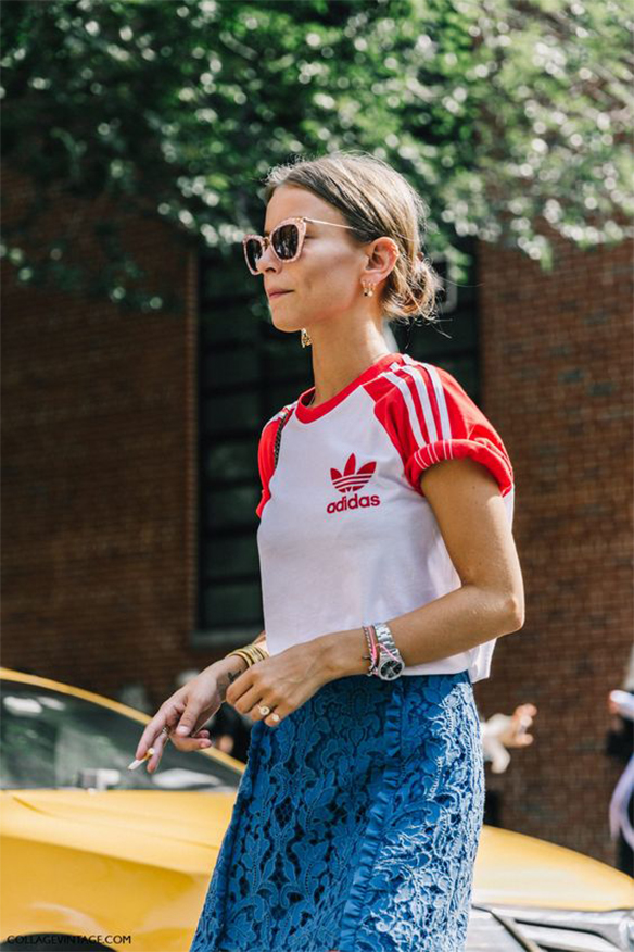 Sporty 90s: one more season, the sporty trend continues stomping strong. Sweatshirts, trainers, flip flops, sport pants… but the novelty is that this season we add a retro touch remembering the 90s: high-waisted, crop tops, pants with vertical stripes on the sides, etc.