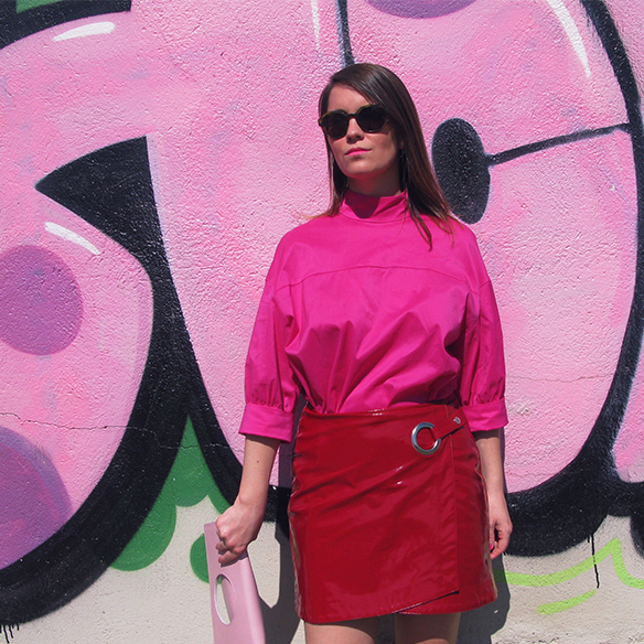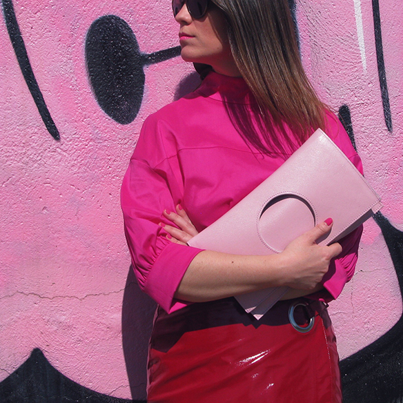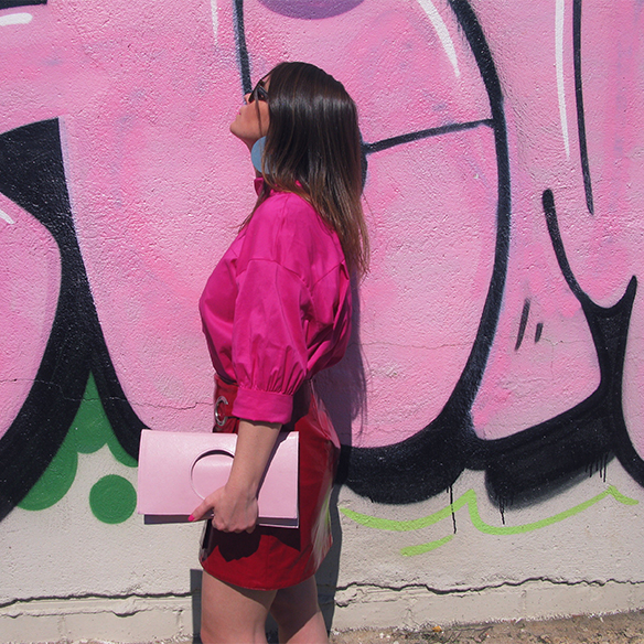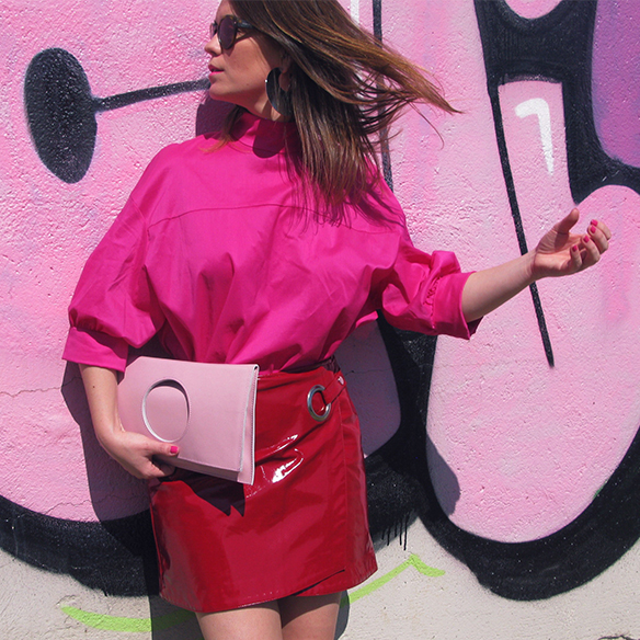 ¡Mi color favorito es tendencia esta primavera/verano! No hay ningún color que dé más buen rollo que el fucsia. No es tan cursi como el rosa, y tiene todo el potencial del naranja y el rojo, sin ser ni uno ni otro. Hoy traigo un outfit muy cañero en color block mezclando fucsia y rojo, ¡quedan tan bien juntos! En la misma gama de magentas pero esta vez en rosa claro añado un bolso de C.byme que me tiene enamorada. Su forma cuadrada con el círculo para cogerlo, el que pueda llevarse tanto sin doblar como doblado, creo que es un bolso miminal que tiene muchísimo rollo. Termino el look con flats metalizados y labios en fucsia. Sí, el fucsia no solo viene en ropa y complementos si no también en maquillaje ;)