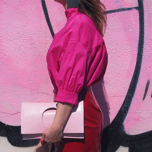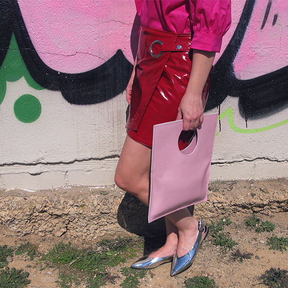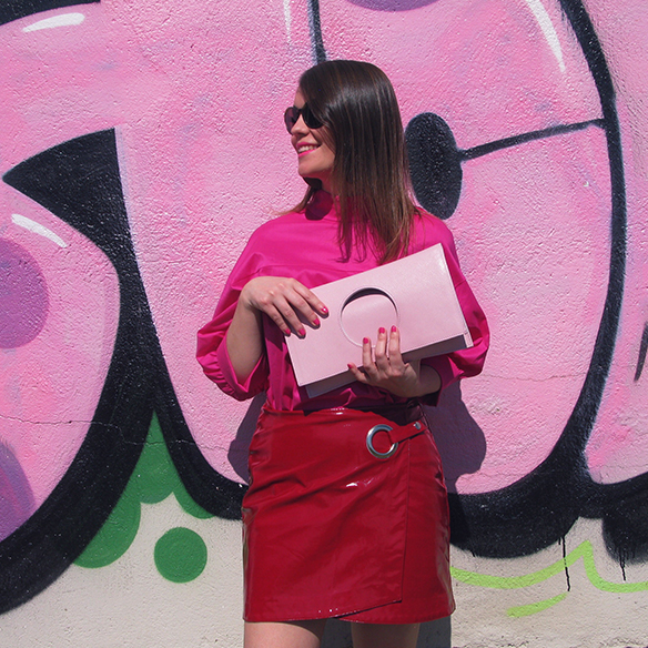 My favorite color is a trend this Spring/Summer! There is no color that gives more good vibes than than fucshia. It is not as cheesy as pink, and has all the potential of orange and red, without being either one or the other. Today I bring a very daring outfit in color block mixing fucshia and red, they look so good together! In the same range of magentas but this time in light pink I add a bag of C.byme which I have fallen in love with. Its squared shape with the circle to get it, which can be worn both without folding and folded, I think it’s a miminal handbag that has a lot of vibes. I finish the look with metallic flats and fuchsia lips. Yes, fucsiha does not only come in clothes and accessories but also in makeup ;)