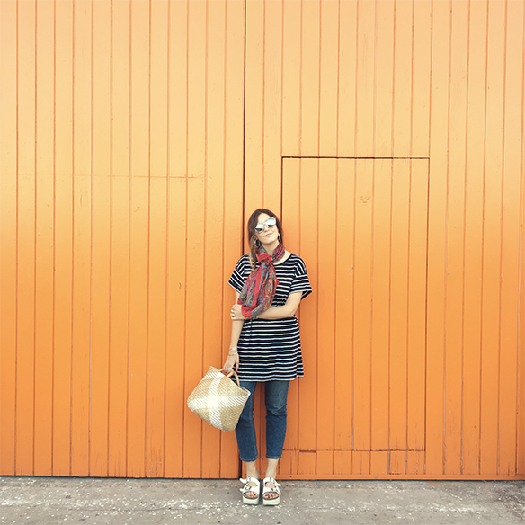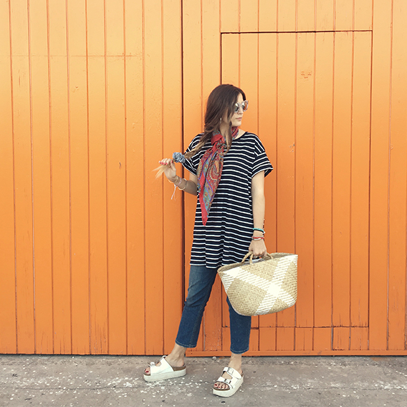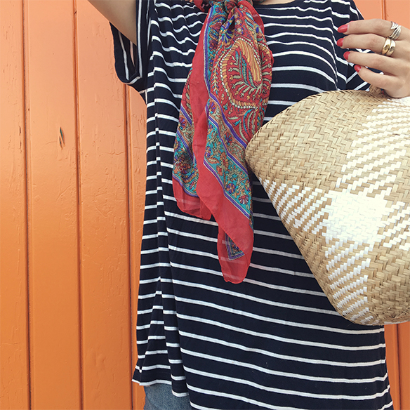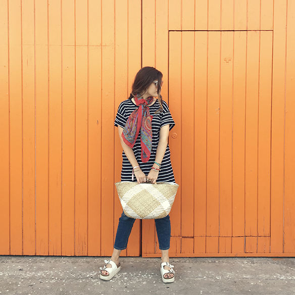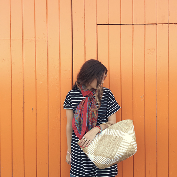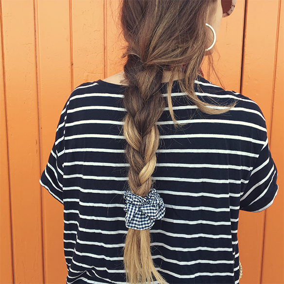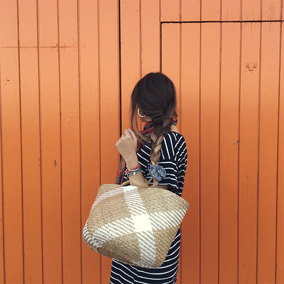 A perfect plan for these days of disconnection that were so good to charge batteries. A picnic, barefoot, under the sun and in a very countryside style between stripes, jeans and wicker. A braid with vichy print scrunchie and sunnies to pass the day and enjoy. You choose the destination…