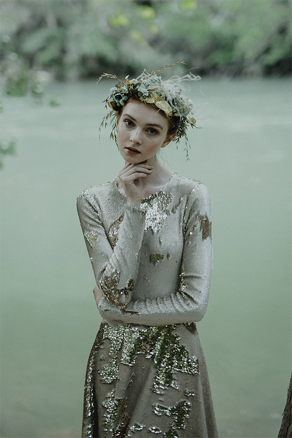 Although she can be confused with the boho bride, she’s more restrained than the last, and she likes thinking that a Camelot knight is waiting for her with his horse and his sword… She doesn’t feel like wearing neckline, but yes belled or long sleeves, a discreet veil, and she might wear braids with flowers or metal ornaments.