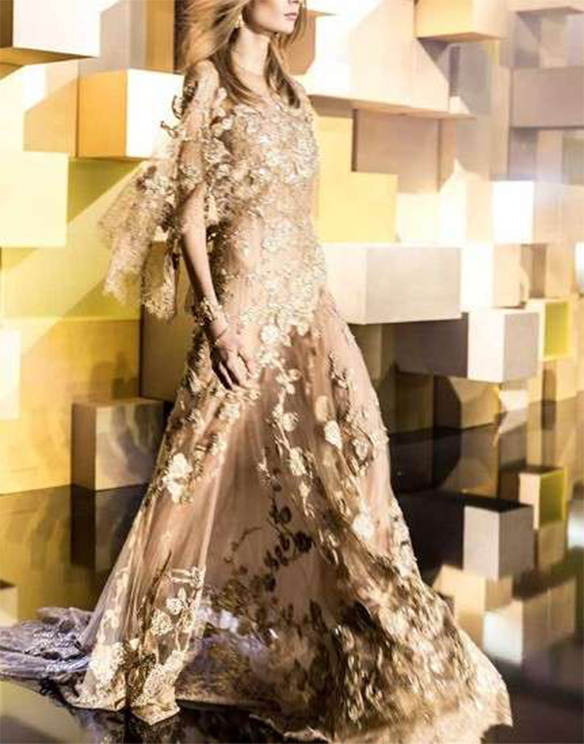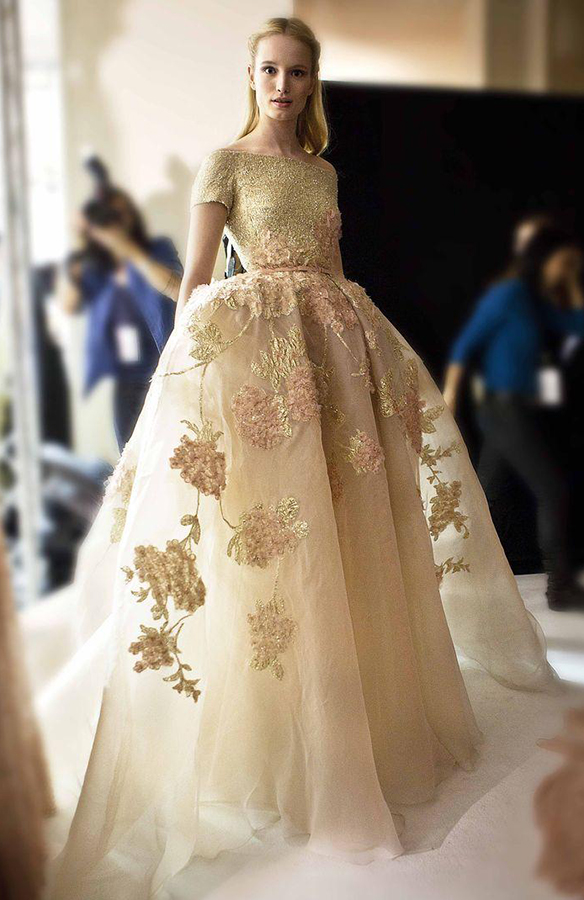 Bridal catwalks are also full of golden proposals. So if you feel pink is to corny, a golden wedding gown is a very good option. Elegant, festive and original. You will be remembered always as the golden bride.