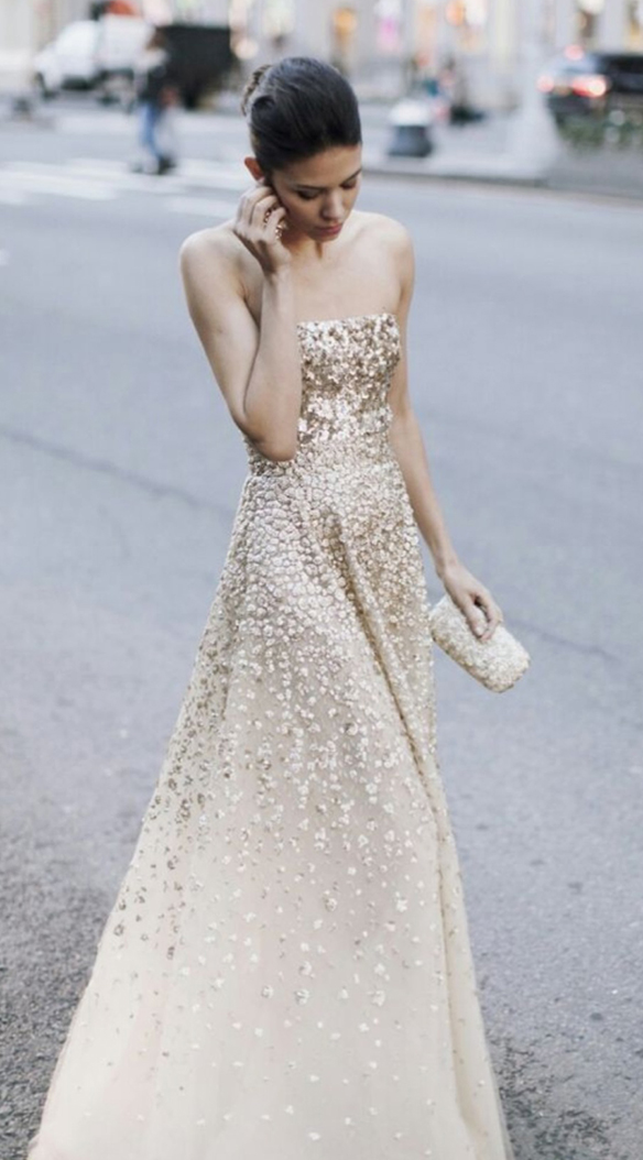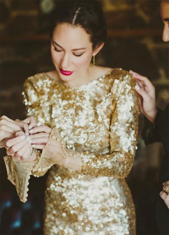 Las pasarelas nupciales también van llenas de propuestas en dorado. Así que si el rosa te parece muy cursi, un vestido de novia dorado es una opción más que buena. Elegante, festivo e original. Te recordarán siempre como la novia dorada.
