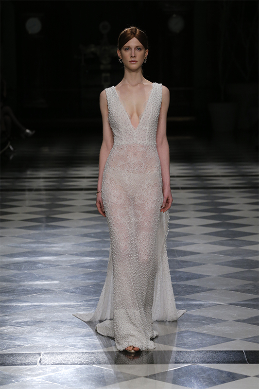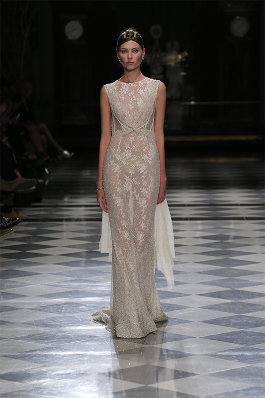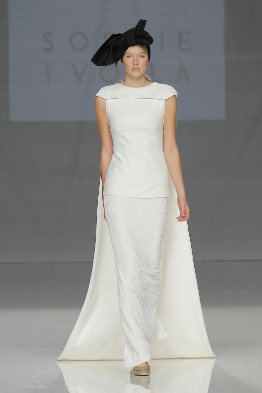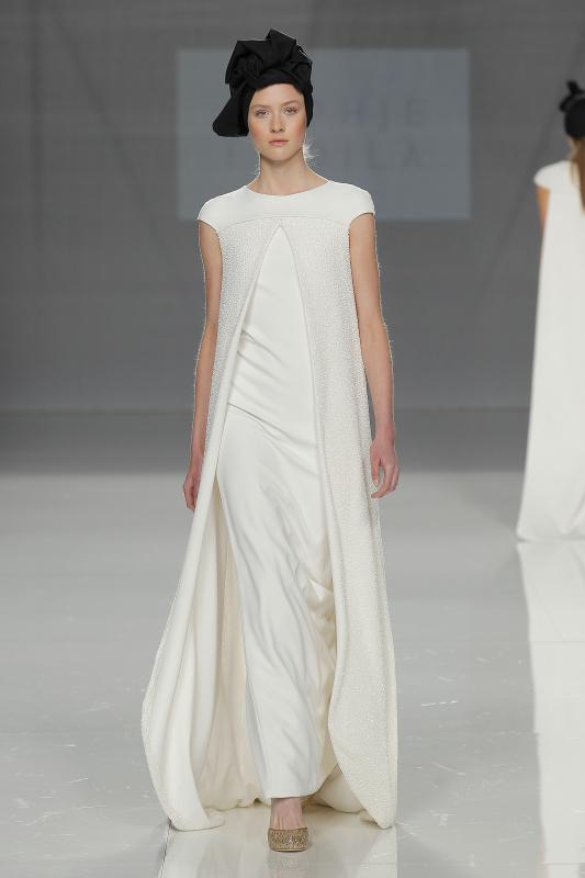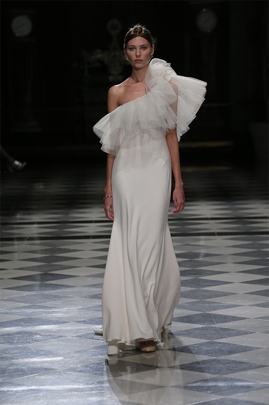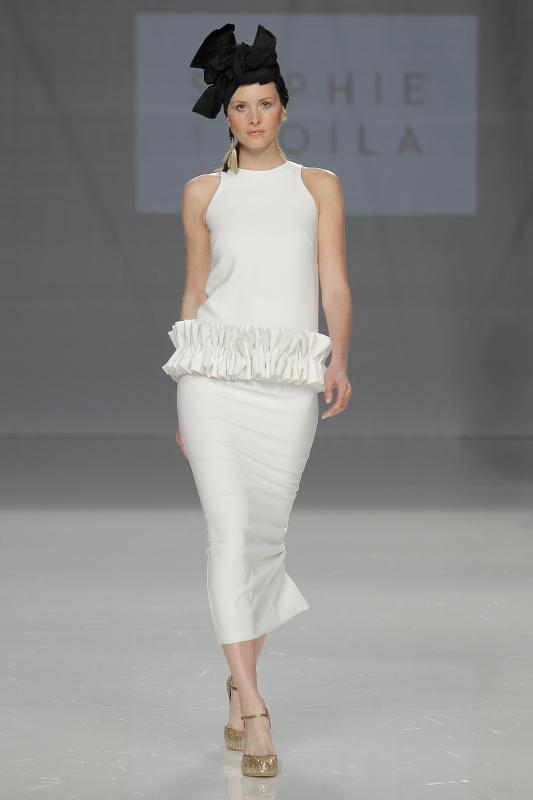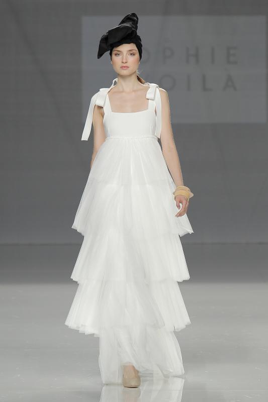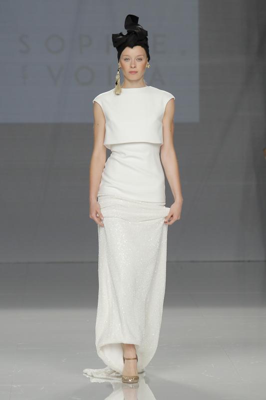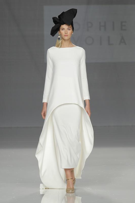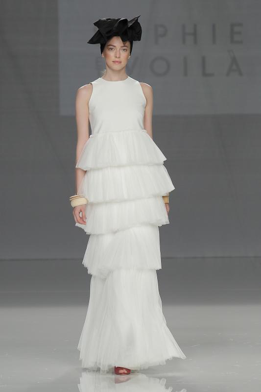 Un 10 a esta diseñadora bilbaína, de la que nos habían hablado bien, pero de la que todavía no habíamos visto nunca nada. Flipamos. Seguimos flipando. ¡Atrás quedan por fin esas novias princesas cursis! Sophie et Voilà nos trae la unión de la arquitectura y de la alta costura, obteniendo como resultado una novia que refleja un carácter tan minimalista como fluido; en el que las ondas y las líneas rectas se fusionan en armonía como reflejo de una mujer fuerte y femenina a partes iguales. Cortes limpios, diseño sobrio y atemporalidad de siluetas visten a una novia urbanita que no por serlo pierde su feminidad. Además, la diseñadora consigue ir más allá con el toque étnico de los complementos que lucen sus modelos, y del súper acierto de la música que hubo en directo durante todo el desfile. ¡No nos puede gustar más, tanto para novia como para invitada! Ha sido un lujo tenerlos desfilando por primera vez en la Barcelona Bridal Week.