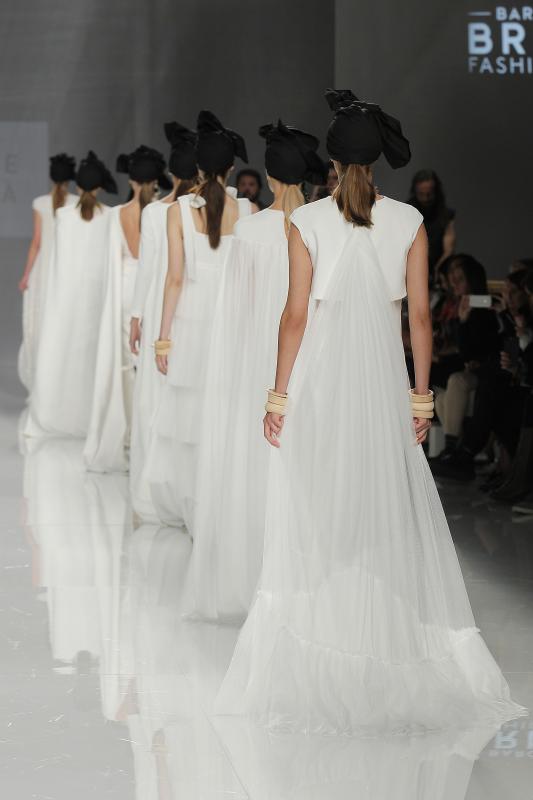 Un año más Barcelona recibe la Bridal Fashion Week. Nos encanta poder ver los desfiles de primera mano, y sobre todo, descubrir aquellas firmas que no conocíamos, o aquellas por las que no dábamos nada, y que logran sorprendernos gratamente. Bastante estupefactas nos hemos quedado al ver todo el «postureo» que hay detrás de los desfiles top, en los que se ve los front rows (y no tan front) repletos de gente que no se dedica al sector de la moda pero que tiene que asistir para dejarse ver, en pasarelas que justamente no suelen ser ni de las que nos traen algo nuevo, ni de las que nos muestran cosas diferentes, ni de las que arriesgan. Cuánto daño ha hecho el marketing a la realidad. Nosotras sin duda somos más de aquellos descubrimientos de las firmas no tan top que sí tienen mucho que decir y mucho que enseñar.
