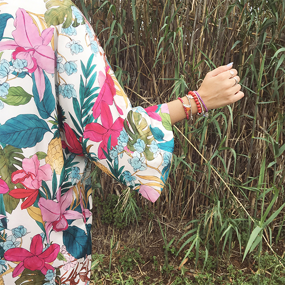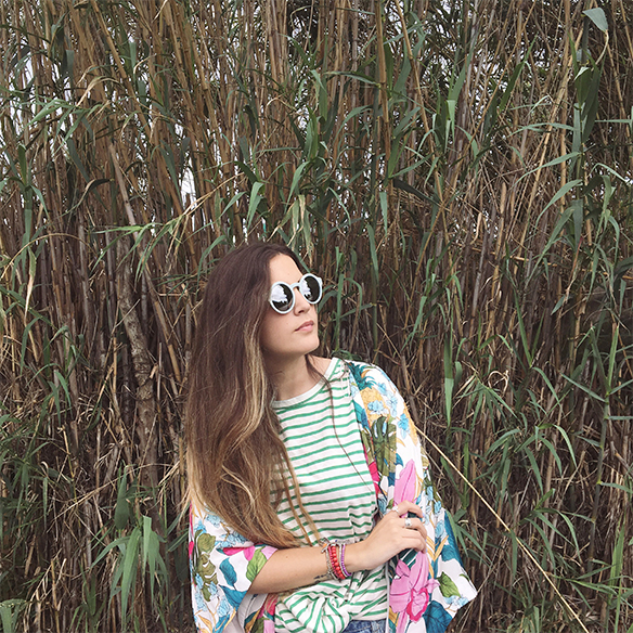 Canyes de bambú per a un quimono tropical. Ratlles verdes amb fúcsies, jeans còmodes i estiu. De vegades voldries transportar-te a una platja deserta entre palmeres, sorra i mar… I potser, vestir-te amb aquests tons i prints s’acosta una miqueta més a aquest bonic somni. És una forma de desconnectar desperta o somiar amb els ulls Boberts, oi? Seguim somiant.