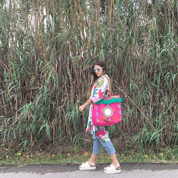 Bamboo reeds for a tropical kimono. Green stripes with fuchsias, comfortable jeans and summer. Sometimes you would want to transport yourself to a deserted beach among palm trees, sand and sea… And perhaps, dressing with these tones and prints is a little closer to that beautiful dream. It is a way to disconnect awake or to dream with open eyes, right? Let’s keep dreaming.