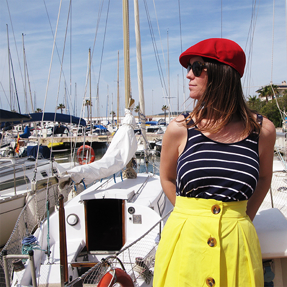 El amarillo es tendencia. Ya sabemos que es un color un poco complicado para las que no somos muy morenas de piel, ¡pero da alegría! Así que no lo dudé ni un segundo cuando vi esta falda abotonada de talle alto. Soy mucho de mar y me encantan los outfits marineros. El amarillo, aunque pueda no parecerlo, es uno de los 3 colores marineros por antonomasia: azul, rojo y amarillo. Paseando entre lanchas y veleros con mi nueva falda amarilla, top de rayas en azul, y cierro el look con el rojo de las alpargatas y la boina. ¡Estoy segura de que este verano me veréis mucho con este conjunto marinero! ¿Ya tenéis alguna prenda de color amarillo?