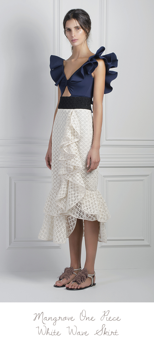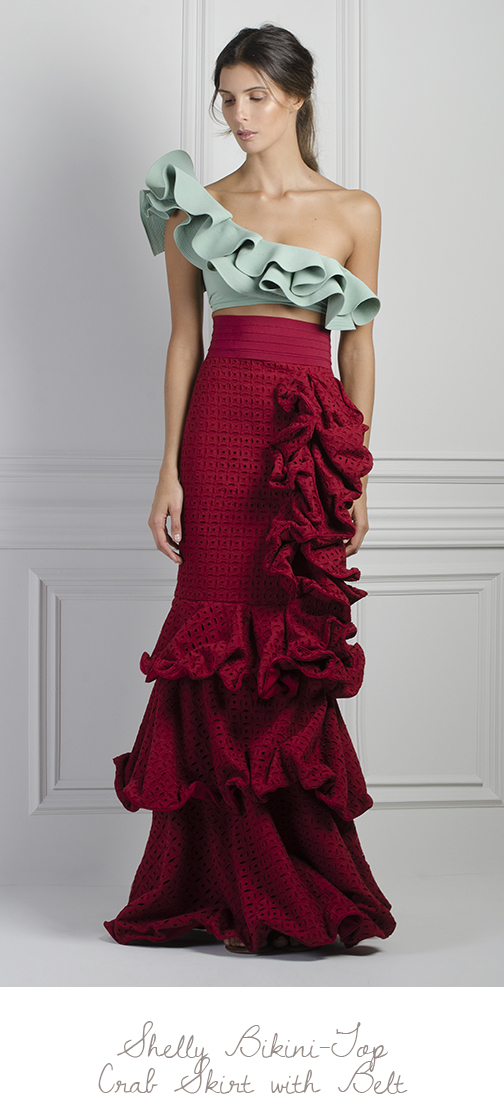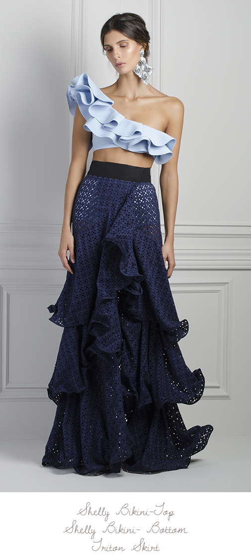Elegancia, sofisticación y feminidad brillando en su máximo es lo que caracteriza a la mujer Johanna Ortiz, y lo que se desprende de su colección debut de swimwear para este verano ’17. No es de sorprender que tras seguir la pista de esta diseñadora colombiana sobre las pasarelas, nos deleite por primera vez con prendas de moda de baño dignas de una diva. La precursora de la tendencia off-shoulders el pasado verano ’16, con fiel seguidoras como la mismísima it girl Olivia Palermo, este verano nos trae propuestas llenas de volantes, lunares, asimetrías, talle alto y cut-out. Una paleta de colores azul bebé, mint, azul marino, black & white, rosa palo, coral y granate intenso son los colores que elige para «High Summer ’17».
