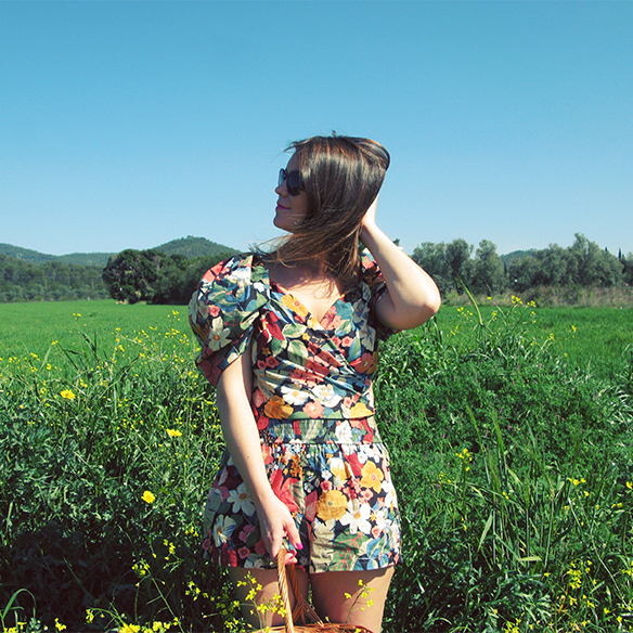 Although long ago I was of smooth not prints, and my favorite prints were the stripes and timidly the polka dots, this season the flower prints have entered with great force in my closet. And as I am of extremes, this time I come with a total look in floral print with poplin sleeved top and shorts. I finish the outfit with a 70’s touch with these small hoop earrings and my wicker basket in honor of Jane Birkin. Do you like to wear floral prints?