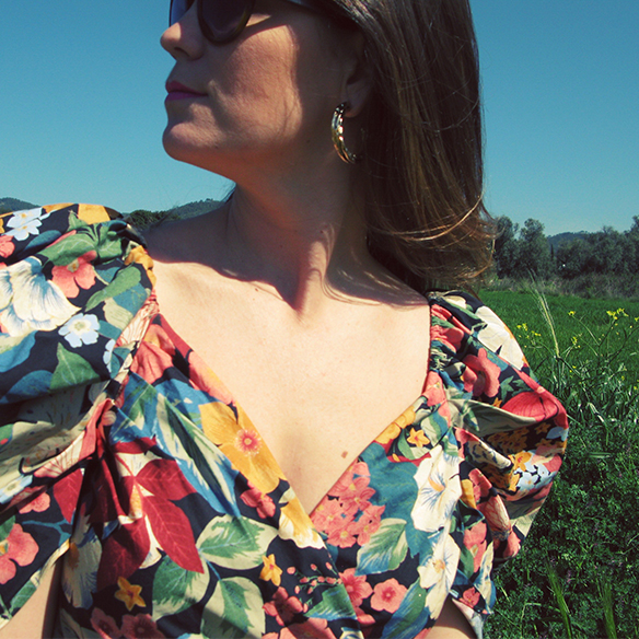 Aunque hace tiempo era muy de lisos y nada de estampados, y mis estampados favoritos eran las rayas y tímidamente los topos, esta temporada los estampados de flores han entrado con mucha fuerza en mi closet. Y como soy de extremos, esta vez vengo con un total look en floral print con top de mangas poplin y shorts. Termino el outfit con un toque años 70 con estos pendientes de aros pequeños y mi bolso cesto de mimbre en honor a Jane Birkin. ¿Os gusta lucir estampados de flores?