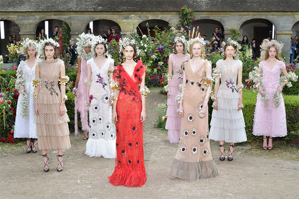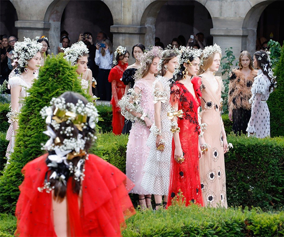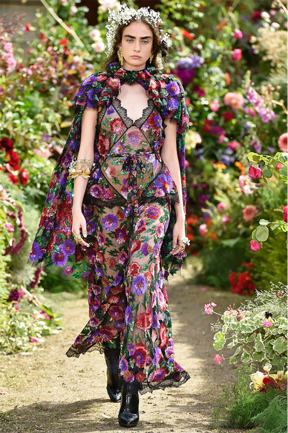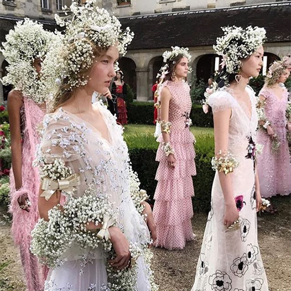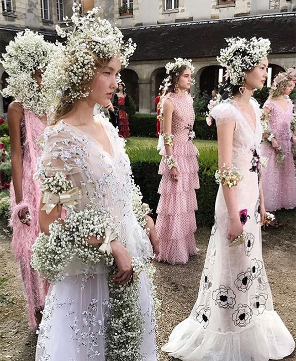 Sin palabras. Rodarte se estrena en la semana de la Haute Couture de París con una «explosión de flores» y un éxito rotundo. La firma de las hermanas Kate y Laura Mulleavy triunfa con una colección de ensueño en la que dejan volar su imaginación para dar vida a unas ninfas románticas, ultra femeninas, bucólicas pero a su vez modernas, que desfilaban perfumando exquisitez por las arcadas y jardines de una abadía del siglo XVII. ¡Instagram iba como loco!