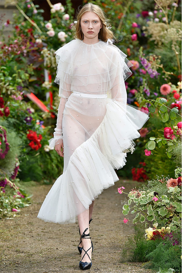 Speechless. Rodarte premieres in Paris’ Haute Couture week with an «explosion of flowers» and a resounding success. The signature of the sisters Kate and Laura Mulleavy triumphs with a dream collection in which they let their imagination fly to give life to romantic nymphs, ultra feminine, bucolic but at the same time modern, that paraded perfuming exquisitez by the arcades and gardens of an abbey from the 17th century. Instagram became crazy!