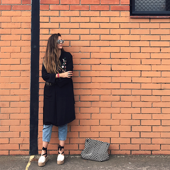 I am getting more and more sensitive to cold… And although the daytime temperatures almost reach 30 degrees in Barcelona, in the afternoon and evening I still resist going short. Cropped jeans and kaftans become my biggest ally to enjoy the summer nights. Thus jeans, body in baby blue and kimono with embroidered flowers were my allies to enjoy the concerts of one of the most summery festivals of the city. For the moments before dawn sunglasses of the same tone that the body and to close the outfit espadrilles and B&W bag. What look do you choose to enjoy concerts and outdoor parties?