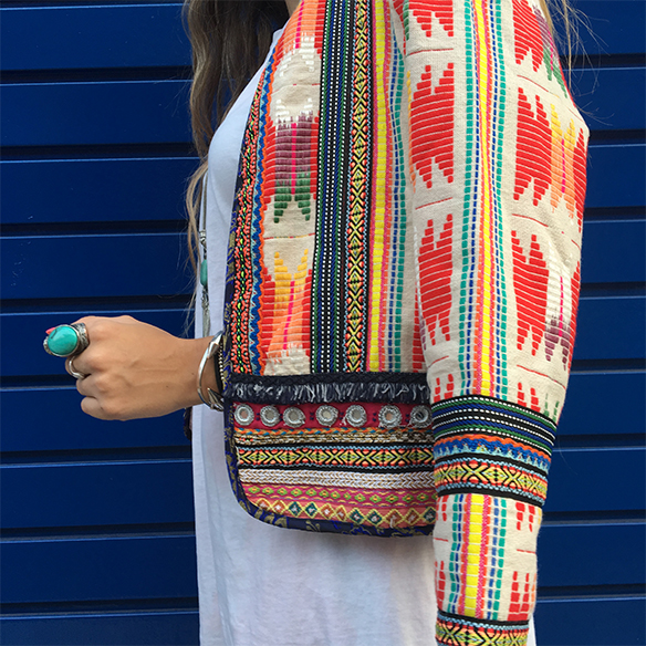 Amores de verano. Mi amor de verano esta chaqueta en ethnic print con tachuelas. No necesitas más. Un vestido blanco, sandalias y es el típico look todo terreno para el día y la noche. ¿Y tú, tienes prenda fetiche para este summer?