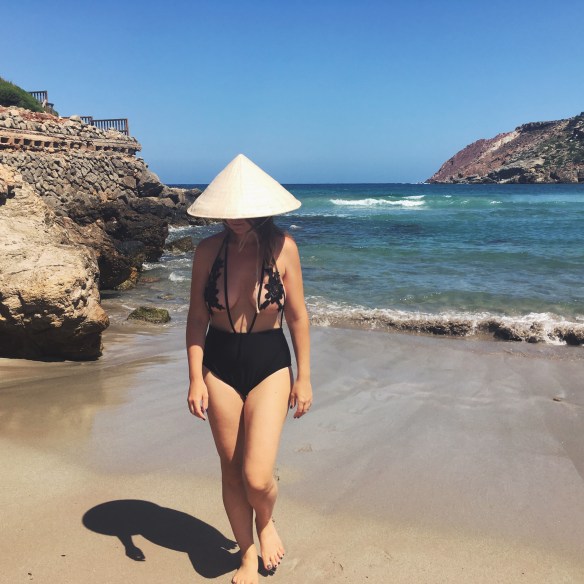 Everyone must be aware of their defects and virtues and learn to love oneself as one is. We can not criticize the thin ones by saying that they do not eat because they may eat a lot and it’s their constitution. Nor can we criticize fat women by telling them they are not stopping eating because they may be on a constant diet and having a bad time. Nor can we complain: those who have little breast because they want more, those who have a lot because they want less. That’s it. I know that I have fairly large breast for the short I am, I know that I am part of the 99% of women who have cellulitis and I am aware that I have a fairly wide hip. But I’m proud of being a curvy woman – one of those I call «curvy where you can grab» – so who says I can not wear a sexy swimsuit? Society? Fuck the society we live in, beauty is in imperfection and in being different! And for different, my fetish hat this summer, the Vietnamese Non La hat that freaks me out!