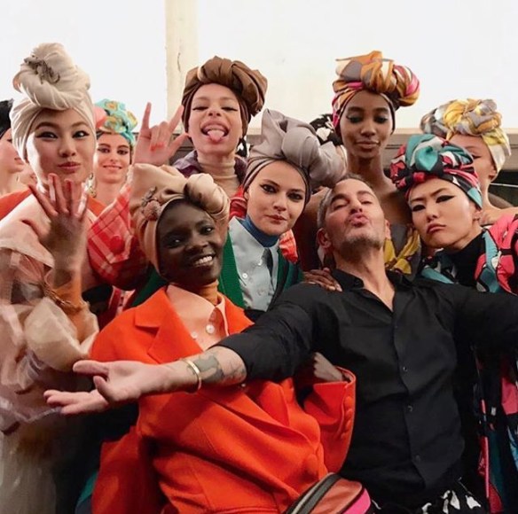 En el último día de una edición de la NYFW un tanto «sosa», llegaba el desfile de Marc Jacobs. Su colección PV 2018 vino cargada de color, prints y texturas, al más puro estilo tribal. Nos declaramos fans de esta tendencia de turbantes enormes, que el diseñador combina con una gama multicolor como si de un arco iris se tratase junto a estampados de infarto y mezclas de influencias del pasado y del presente.