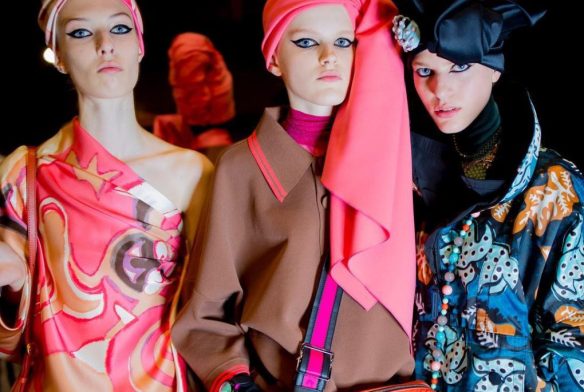 Along the catwalk stand out different contrasts that are in tune with the transgressor style of the firm: tube skirts in sophisticated metallic tones, bright and glamourous evening dresses, and on the other hand, sporty looks, loafers and loose garments in prints and color blocs for day to day. Exaggerated, decadent and exotic silhouettes with a sporty and casual touch between, gym bags, tailor designs, soft fall dresses and odes to the decades of the 50s and the 80s. And the icing on the cake? All his proposals were crowned with turbans, flowers and fruits, paying tribute to the femininity, the nature and the timelessness of the woman’s figure.