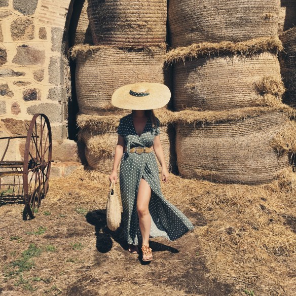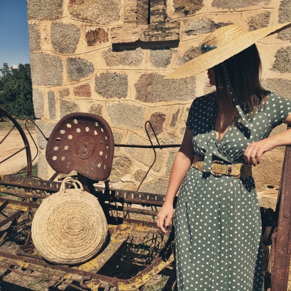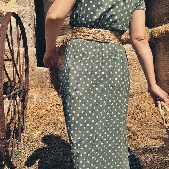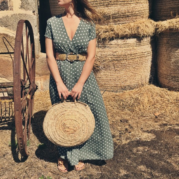 I do not usually wear green. But it was seeing this dress and falling in love. I love polka dots and I love long dresses: et voilà! I still resist letting go wicker, the vaporosity of the dresses and being able of not wearing socks. Autumn arrives, and with it will comes the change of closet, more cozy outfits and much more urban looks. Behind we will leave the «Jacquemus» countryside and that peace that brings me L’Empordà, I don’t want to!