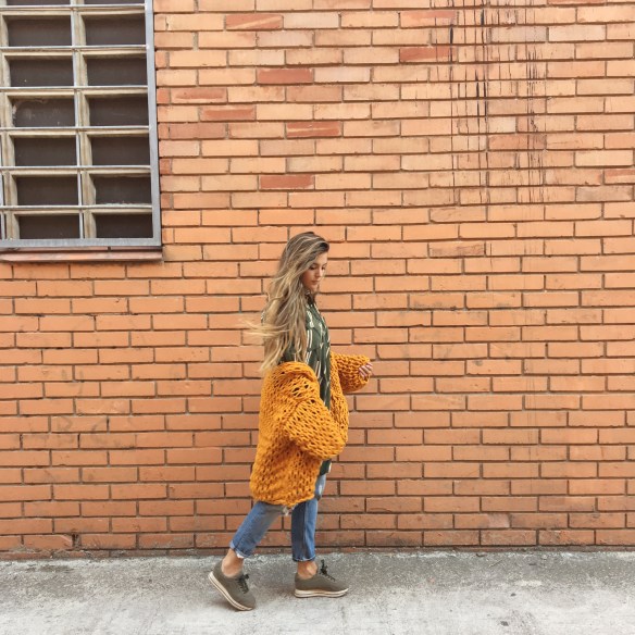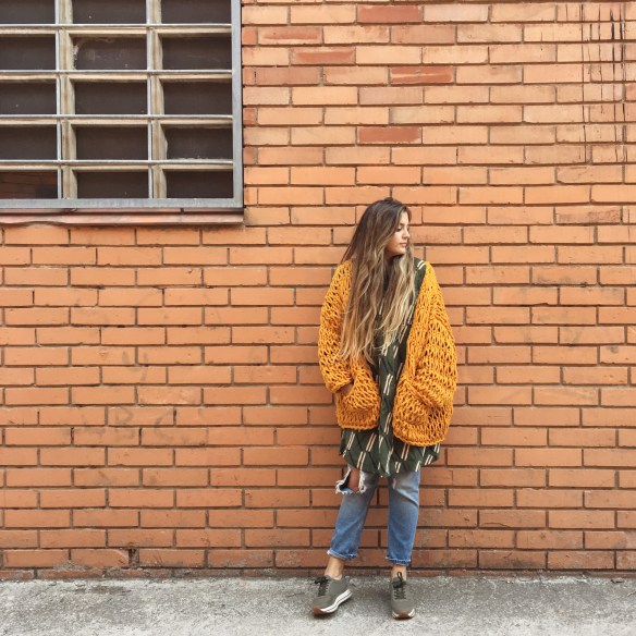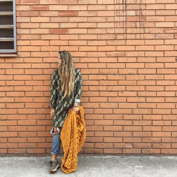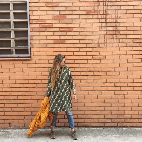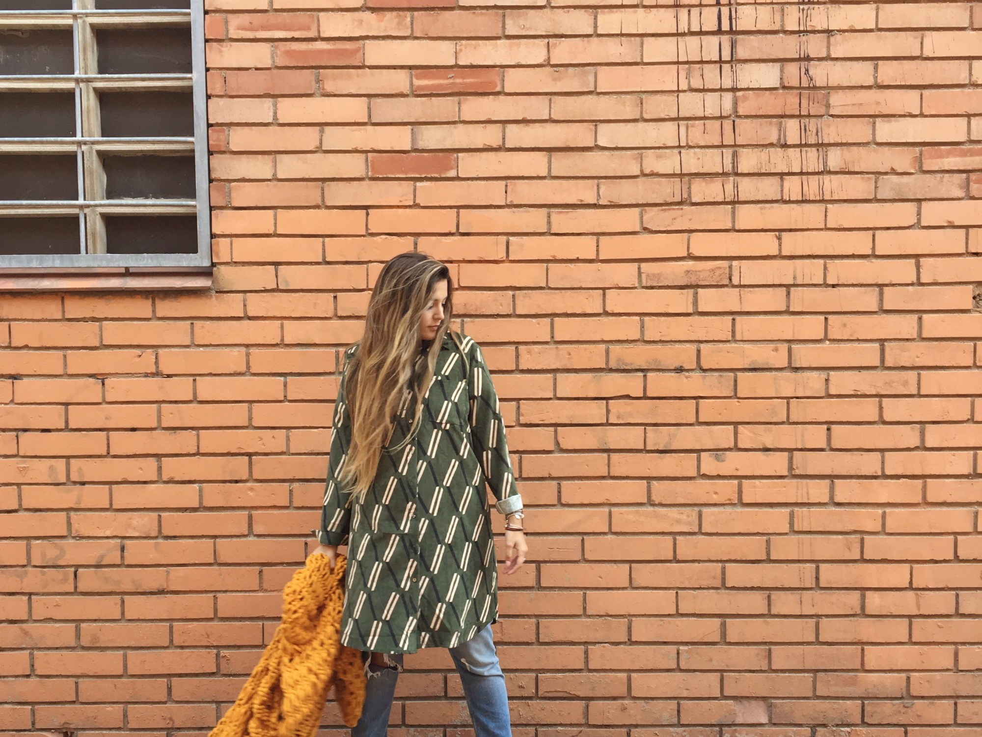 There are fabrics that transport you. To me, corduroy does to the mountain. Those cold and rough landscapes, the mist, the rays of sun peeping between the peaks of the mountains and its leafy vegetation. This winter corduroy is one of the must fabrics, and I like it in its alpine version, like this shirt/dress in bottle green with a retro print of the same roll. I like to match it with the tricot jacket following the same spirit in mustard tone, another color that comes stepping, jeans and trainers also in green. Although I am very urbanite, from time to time a short break to nature to breathe and disconnect, awakens the soul, don’t you think so?