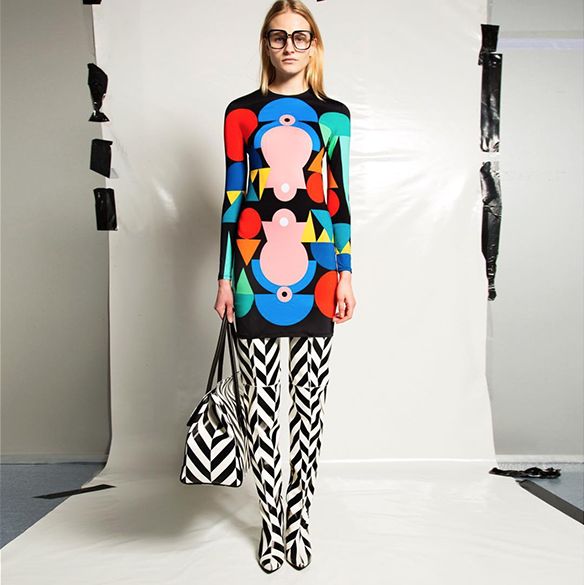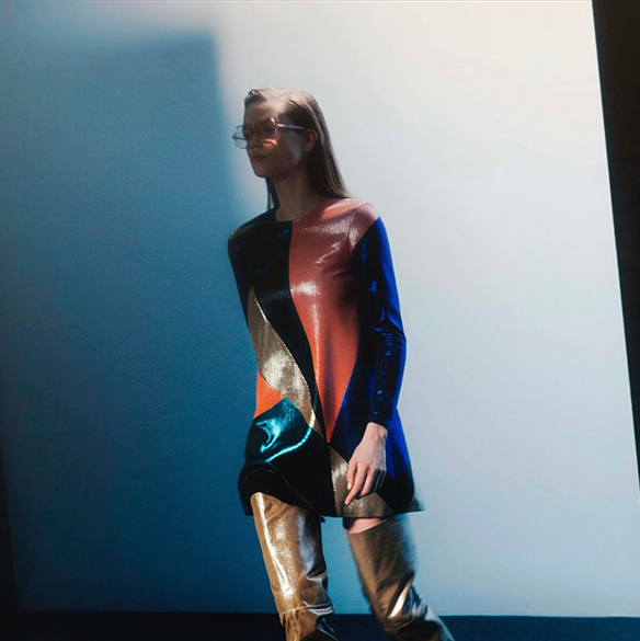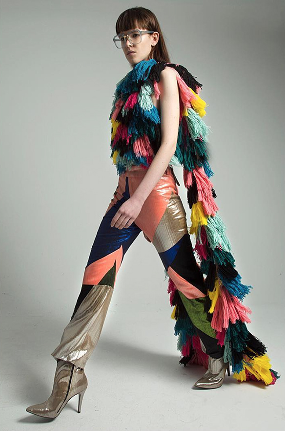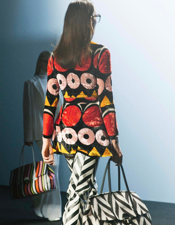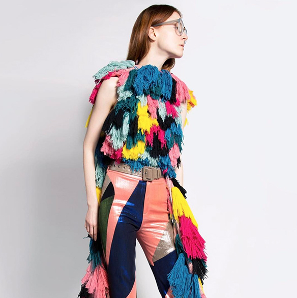 ¡Vive la vida en color! Este es el lema de la joven diseñadora María Escoté que está rompiendo todos los esquemas con sus extravagantes mezclas de explosiones de color, geometrías (muchas en zig zag) y materiales diversos. Con cierto aire retro de los 80s, las propuestas para esta temporada FW17/18 de su colección L’Oiseau destacan además por complementos como las botas over the knee, las hombreras y las gafas y bolsos XL. Os recomendamos que la sigáis en Instagram @maria_escote porque no solo ésta, si no que su colección inspirada en Lady Di para la primavera/verano de 2018 os va a encantar también. Hemos colado una foto, la del mini vestido de topos de colores con hombros XL ¡porque nos ha flipado!