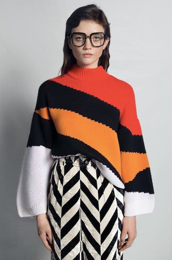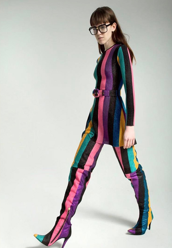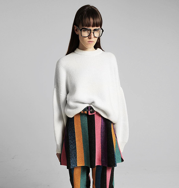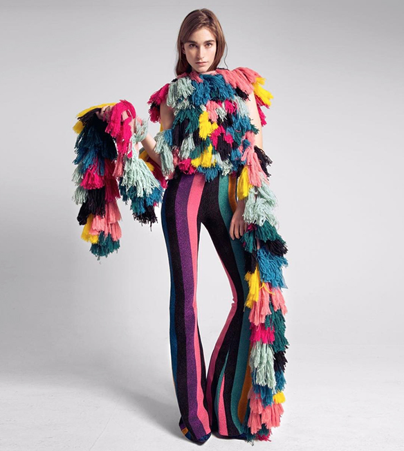 Live life in color! This is the motto of the young designer María Escoté who is breaking all the schemes with her extravagant mixtures of explosions of color, geometries (lots in zig zag) and diverse fabrics. With a retro look from the 80s, the proposals for this FW17/18 season from her collection L’Oiseau also stand out for accessories such as the over the knee boots, shoulder pads and XL glasses and handbags. We recommend that you follow her on Instagram @maria_escote because not only this one, but you will love too her collection for Spring/Summer 2018 inspired by Lady Di. We have posted a picture, that one of the mini dress with colorful polka dots and XL shoulders because we love it!