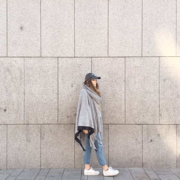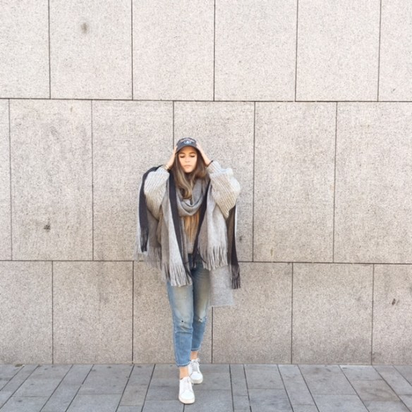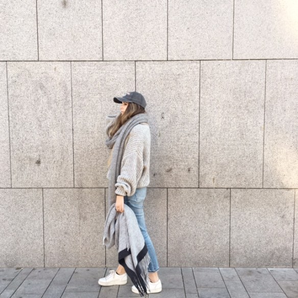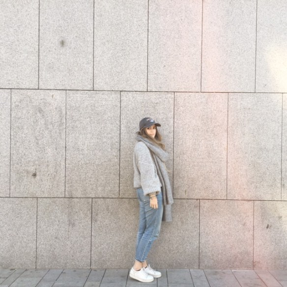De vegades els extrems no són bons i altres vegades són genials. Jo avui em sento defensant el lema «ni blanc ni negre, gris». Visca el gris pels dies de sol a l’hivern! Per aquests dies on l’abric sobra, la «manta» de llana és la meva aliada -en realitat ponxo/capa-, maxi bufanda del mateix to i seguint amb la gamma de colors protagonista, gorra gravada pels raig de sol hivernals. M’agraden els colors neutres per moments lazy, i es que moltes vegades els meus looks acompanyen el meu estat d’ànim… Et passa el mateix?