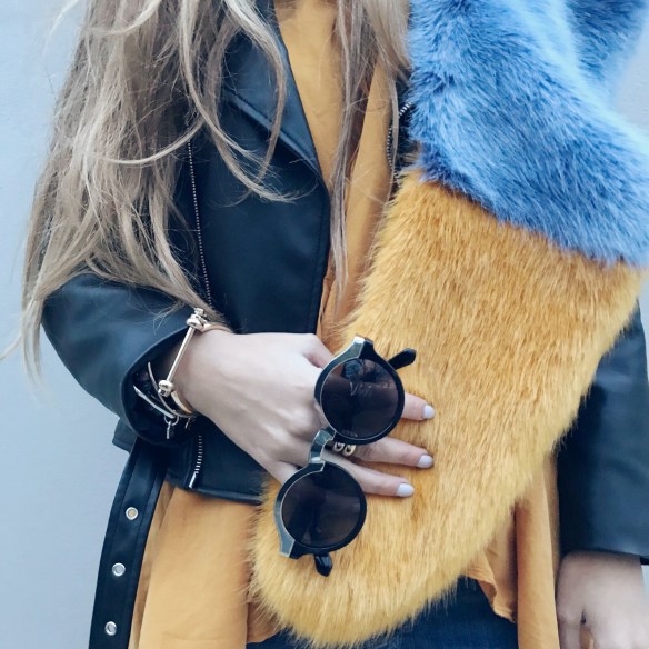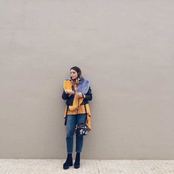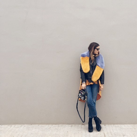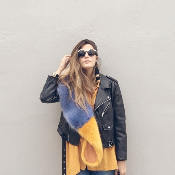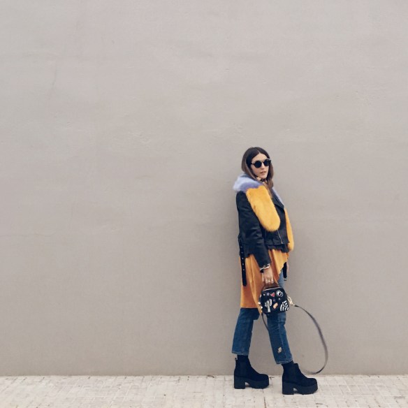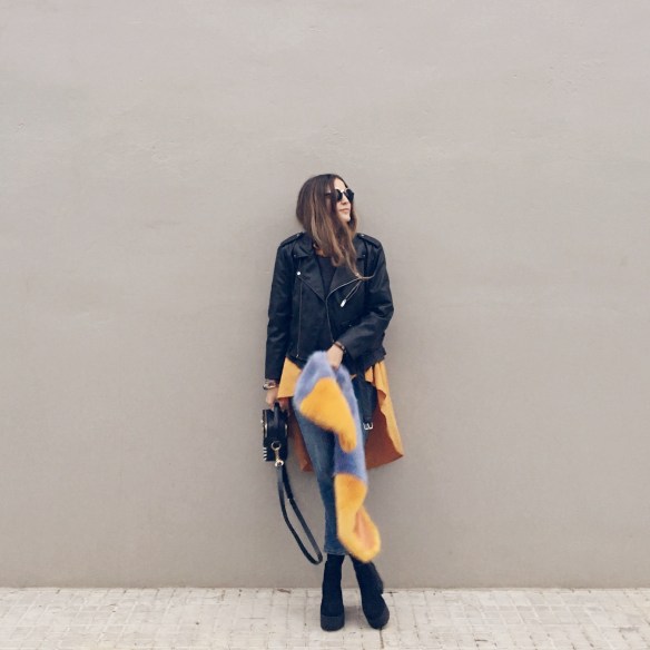 When Christmas days come, stores transform and create an atmosphere that only happens at this time of the year. Whatever the trend, everything becomes shiny, paillettes, black, red, silver and gold. Why? These are supposed to be home days, with the family, where endless tables, toasts and surprises are shared. Precisely for that reason, I opt for a relaxed, comfortable and informal outfit: I change the gold for the tone that most resembles it, mustard, a must this season, in an asymmetrical shirt, skinny jeans and booties. I finish the look with a black perfecto jacket anda mustard and blue stole. For the vermouth before the winter sun, sunglasses with a metalized detail and a patched bag to give a funny nod to the look. That’s why we are on holidays, right? Do you also run away from the stereotypical Christmas looks?