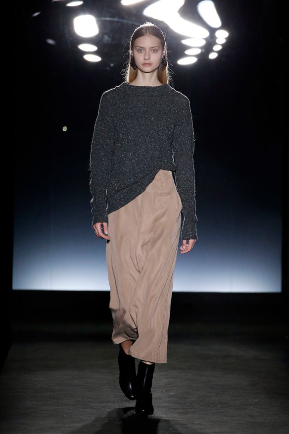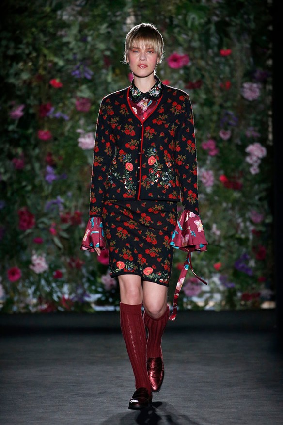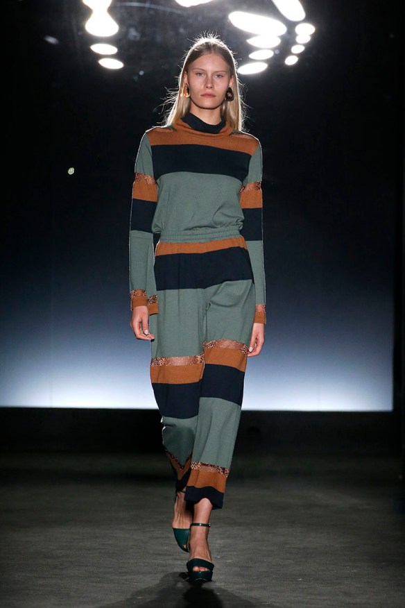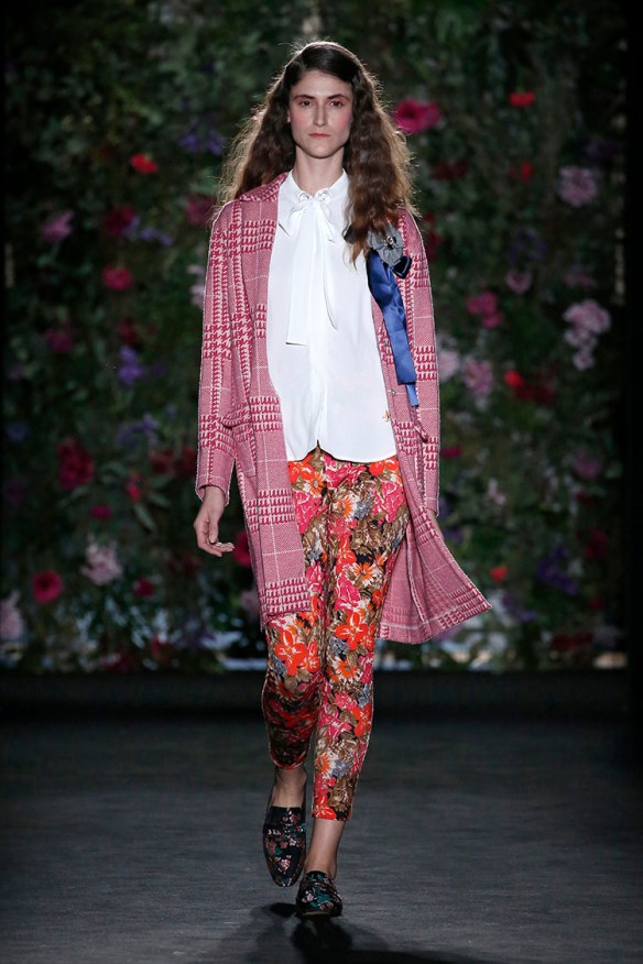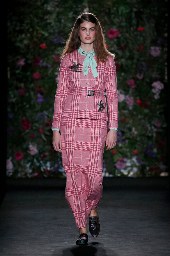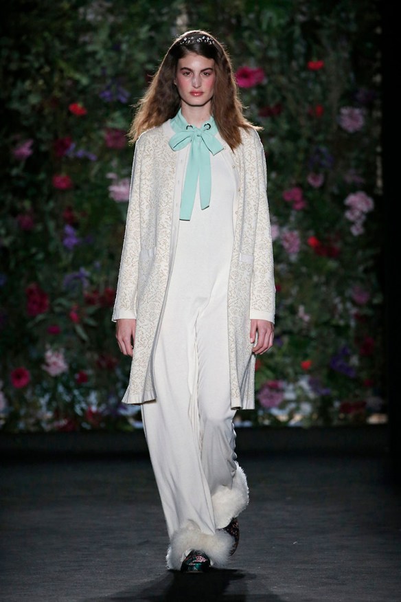 Y de nuevo bajo el lema «more is less«, nuestro top 3 va para Naulover y su colección sobre la fábula de la seducción del unicornio. No nos pueden gustar más los total looks que proponen basados en el punto y mezclados con seda, bordados, estampados, blusas largas, chaquetas, twin-sets, pantalones y faldas. Es la mujer en su paso a la madurez, la mujer en su pérdida de la inocencia. En este caso nos sitúan en un ambiente muy femenino y soft, en gama de colores granates, morados, rojos, verdes esmeralda y negros. En cuanto a texturas, mezclan lanas representando el concepto de vida en el campo, infinidad de cuadros en tweed, gruesos jacquares de flores y pelo natural con sutiles sedas que abrazan el concepto del sueño en forma de camisones y pijamas. Todo ello se convierte en una extrambótica mezcla de estampados diversos, complementos llamativos y sobreposiciones de capas atrevidas, que atrás dejan a esta firma de 1957 quizá conocida como «ropa para abuelas» ya que vienen pisando fuerte -y sin tacones- con su retro moderno, ¡y no sólo para mujeres! Nos encantan las propuestas vanguardistas de la firma, siempre produciendo ropa artesanal de calidad, cómoda y versátil. ¡Os seguiremos de cerca, Naulover!