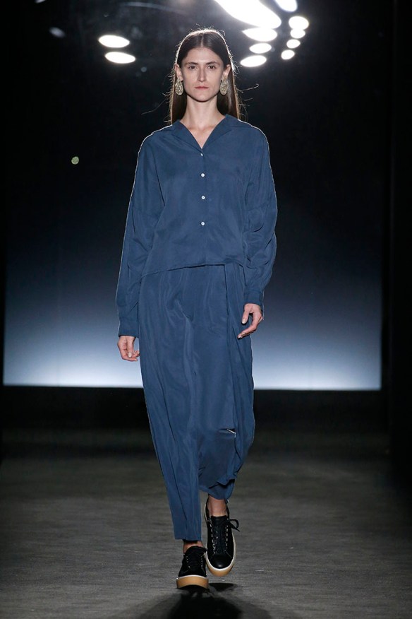 Nuestro top 2 va en total contraposición con el desfile anterior, y ésta vez de la mano del lema «less is more«, llega el joven talento Adrià Machado de la firma AMT, creando una colección para una mujer contemporánea y decidida. Solamente hay que ver sus propuestas que hablan por sí solas desprendiendo minimalismo y atemporalidad. En su colección Komorebi, –palabra que proviene del japonés y que significa la luz que entra a través de los árboles-, AMT representa el concepto con tejidos ligeros como el tencel o el algodón, e utiliza los tejidos con más gramaje para representar a dichos árboles. Complementa sus diseños con modelos apenas maquilladas, peinadas con pelo liso muy lacio y raya en medio, pero sí con imponentes pendientes xl que aportan esa luz. Además, el concepto del bosque le viene que ni pintado porque AMT confecciona sus prendas de manera sostenible, haciendo servir únicamente proveedores de tejidos europeos. ¡Adelante Adrià!