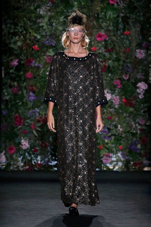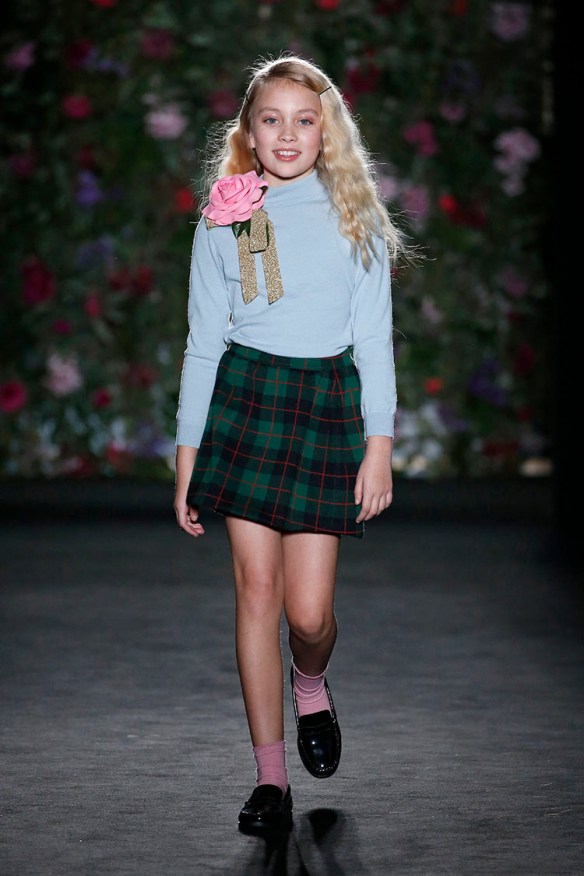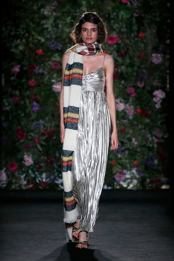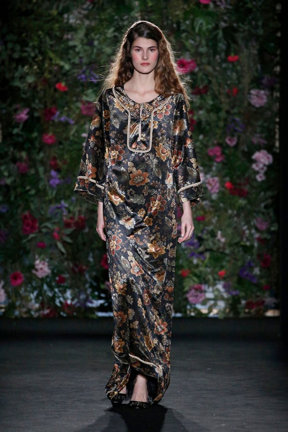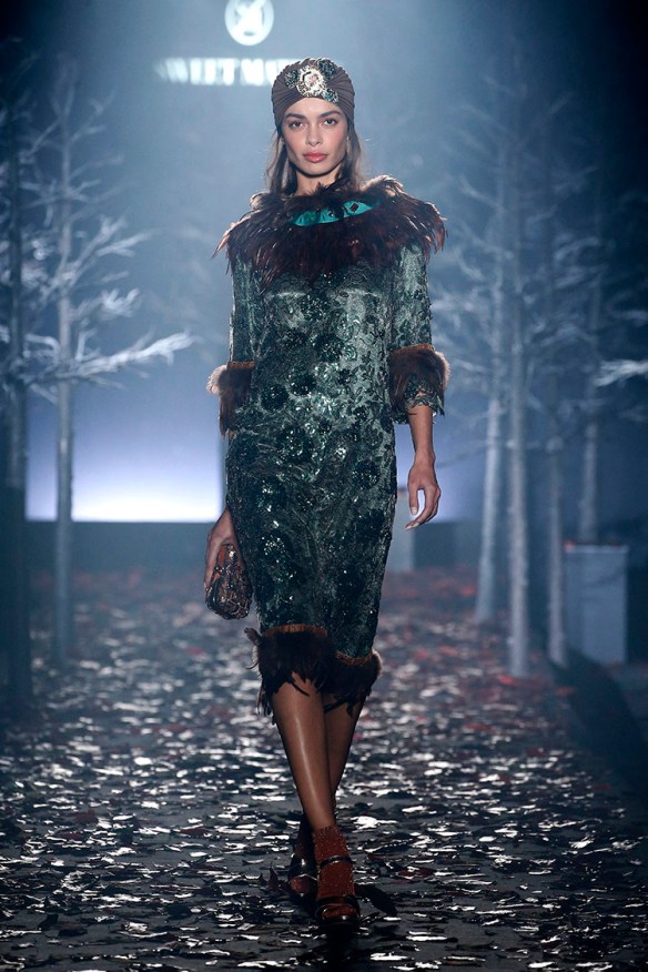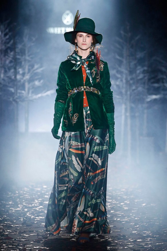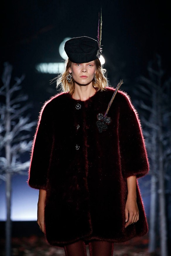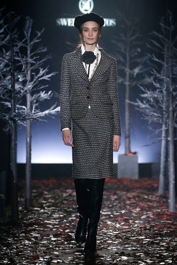 Exageración y lujo de detalles. Sweet Matitos nos trae excesos hasta en la puesta en escena, cosa que nos encanta porque el ambiente es también súper importante en un desfile. Por eso le damos el top number 1 a la colección Winter Ball Season de Matías Jaramillo y Tito Maristany, por apostar por el todo. Empiezan sonando unas gaitas, envueltas de niebla, árboles y hojas en la pasarela; que dan paso a una mujer con clase, auténtica, femenina, sensible, libre y amante del lujo. En esta época del año y como viene siendo tradición, comienza la temporada de bailes, y la mujer Sweet Matitos se retira a su casa en el campo. Una mujer sofisticada y elegante que pasea por el bosque de su jardín amando esa naturaleza. Naturaleza que queda plasmada en las prendas que luce con estampados y flores invernales sobre tejidos de espiga, de paño, en texturas esponjosas, todo en colores otoñales como rojizos, verdes, dorados y grises; y con el lema «more is less» en complementos. Pañuelos, perlas, pendientes xl, lazos, plumas, guantes, sombreros, boinas o turbantes adornan a la mujer Sweet Matitos de una forma sublime. No es de extrañar que ni la mismísima Naty Abascal no quisiera perderse su desfile. ¡Enhorabuena chicos, nos chifla!