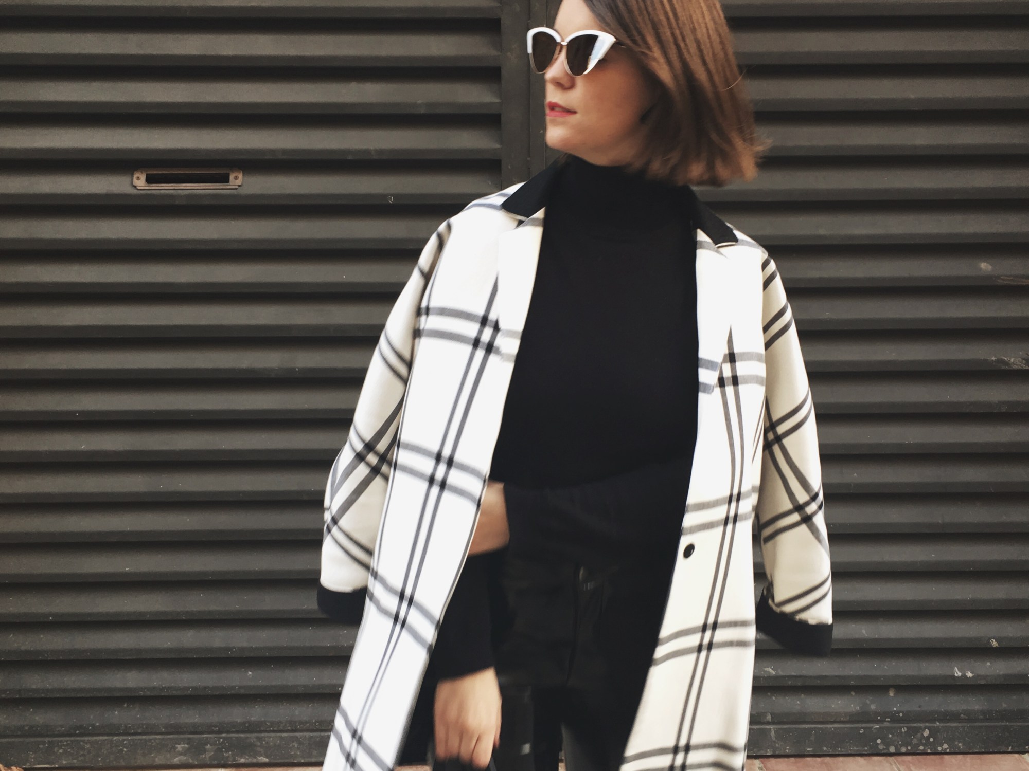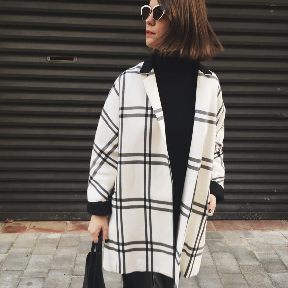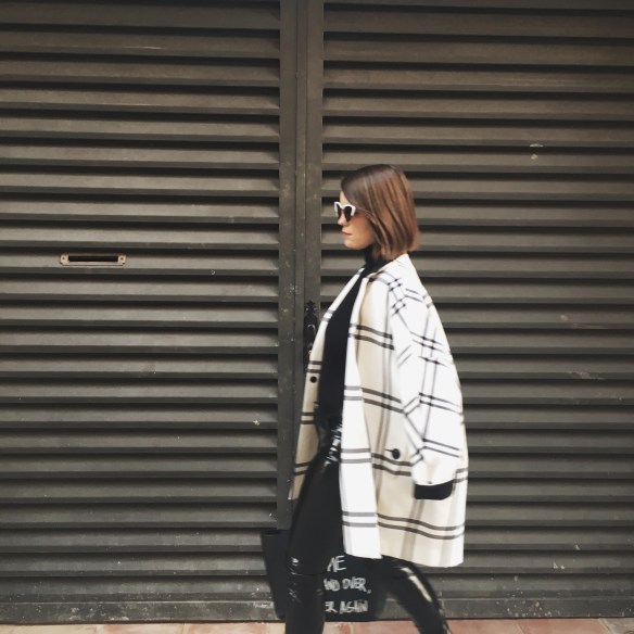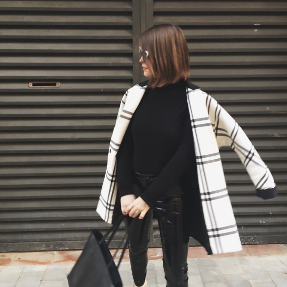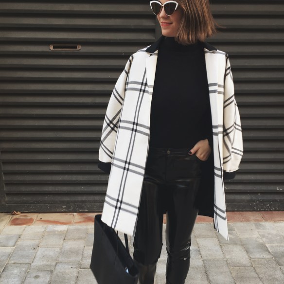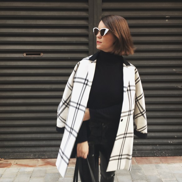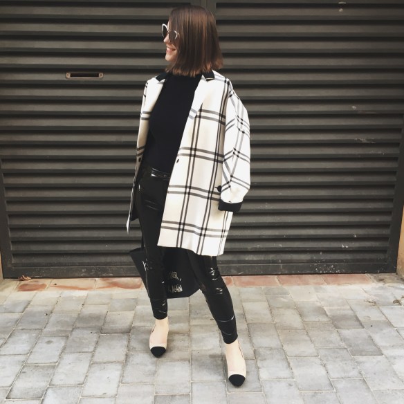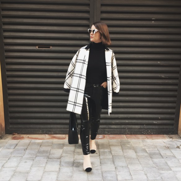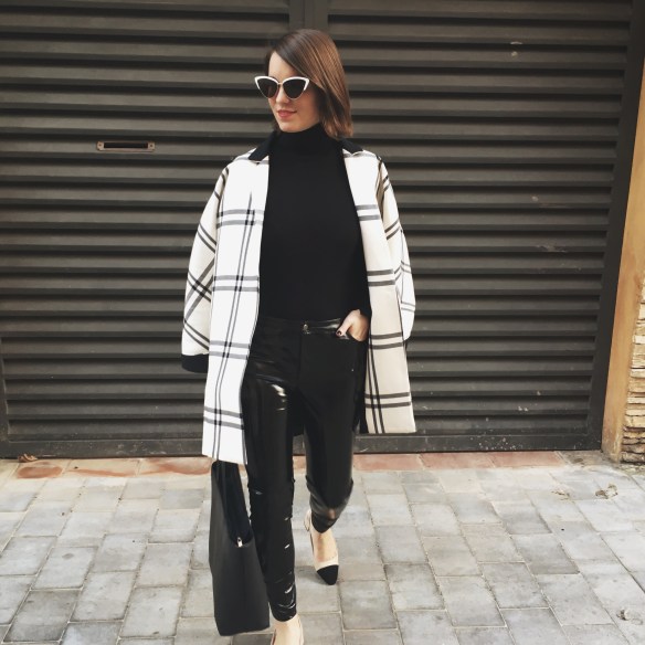 It was seeing these white cat eye sunglasses and getting transported to the 60s! You already know that I’m crazy about black and white outfits. Over the base of the total black look of a turtleneck jumper and my vinyl pants, I match the Chanel style slingbacks and a two-tone jacket that seems to me the most now that Spring is approaching and we start willing to dress with lighter colors. I hope you like my kinda 60s!