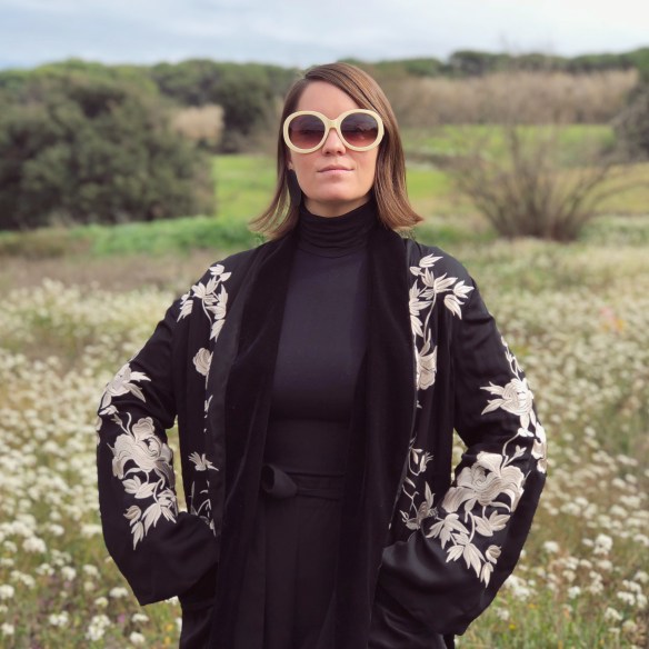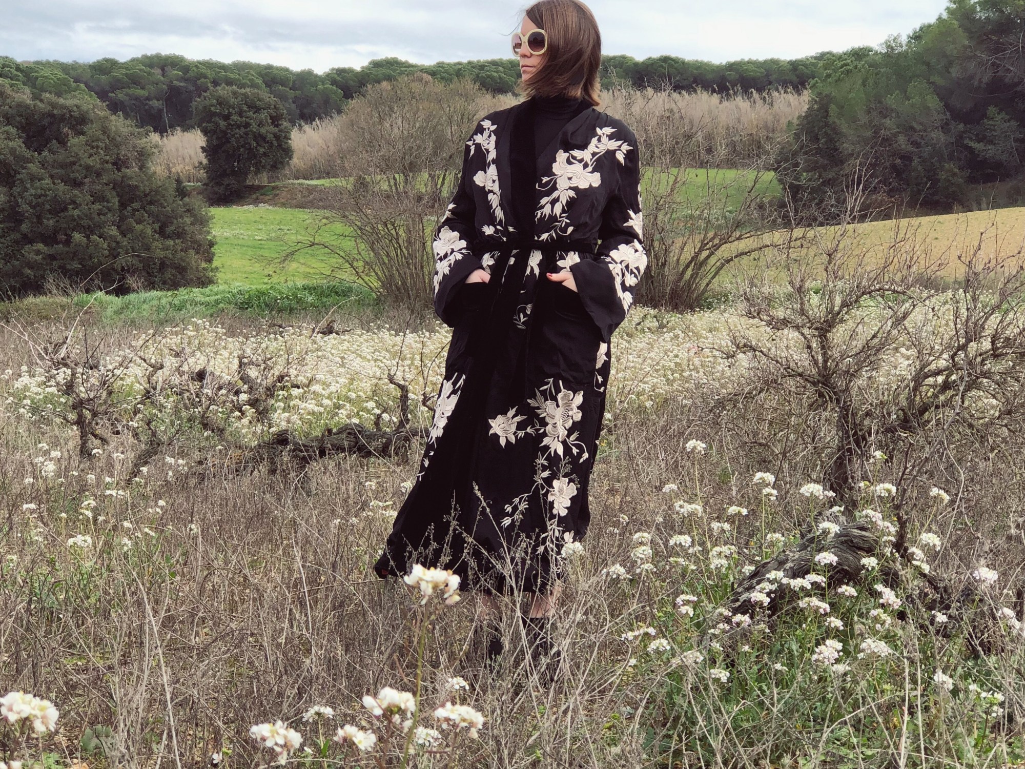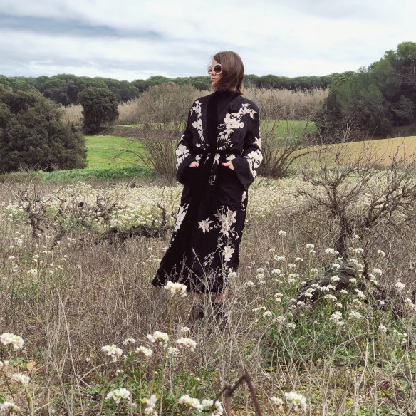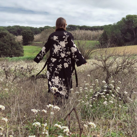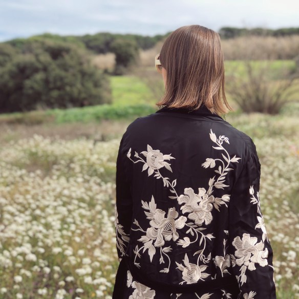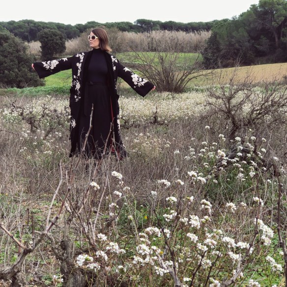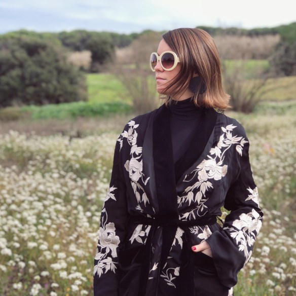 Flowers are my weakness. Of any kind, but the more wilder and without artifices when they go in a bouquet, the better. I get excited when I drive down the road and I see the almond trees have blossomed. It’s like I know that Spring is about to come and with it begins the good weather. And when I think of blossoming, Japan comes to mind, its cherry blossoms and how they so delicately portray the floral prints in their garments. So today I welcome Spring with this kimono that stands above a total black look. Flowers, blossom with desire!